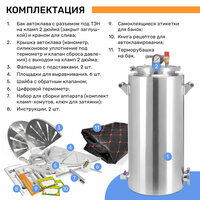 Кламп 2 дюйма предусмотрен в каждом баке, для установки ТЭНа в соответствующее соединительное отверстие (ТЭН приобретается отдельно). Кран для слива воды после использования значительно облегчит окончание процесса. Никакого больше таскания тяжестей.