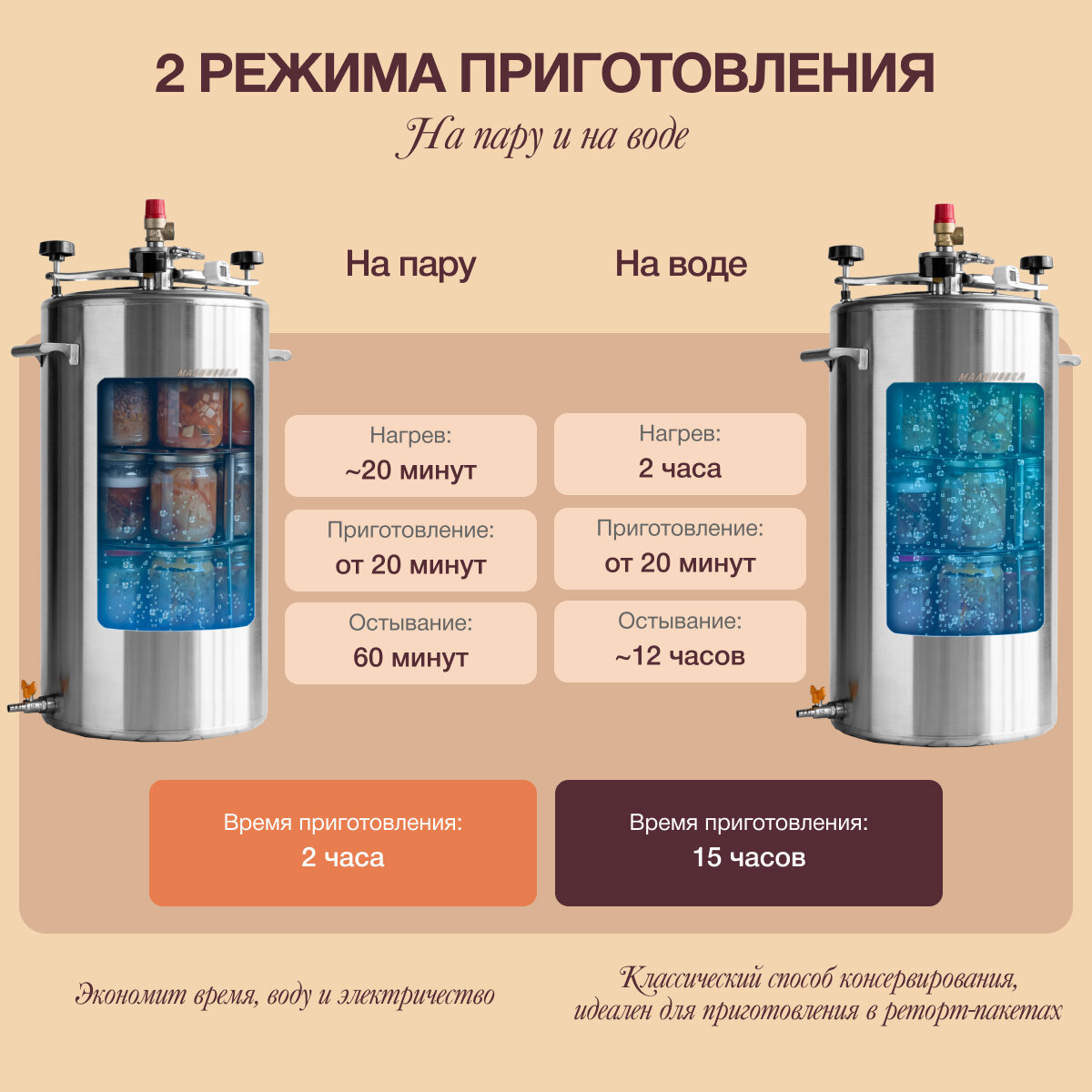 Если вы ищете идеальное устройство для домашнего консервирования, обратите внимание на автоклав «Малиновка». Это современное решение, которое сочетает в себе функции стерилизатора на пару и на воде (2 в 1). Такой прибор идеально подходит для заготовщиков, которые хотят сохранить разнообразие продуктов в домашних условиях.
