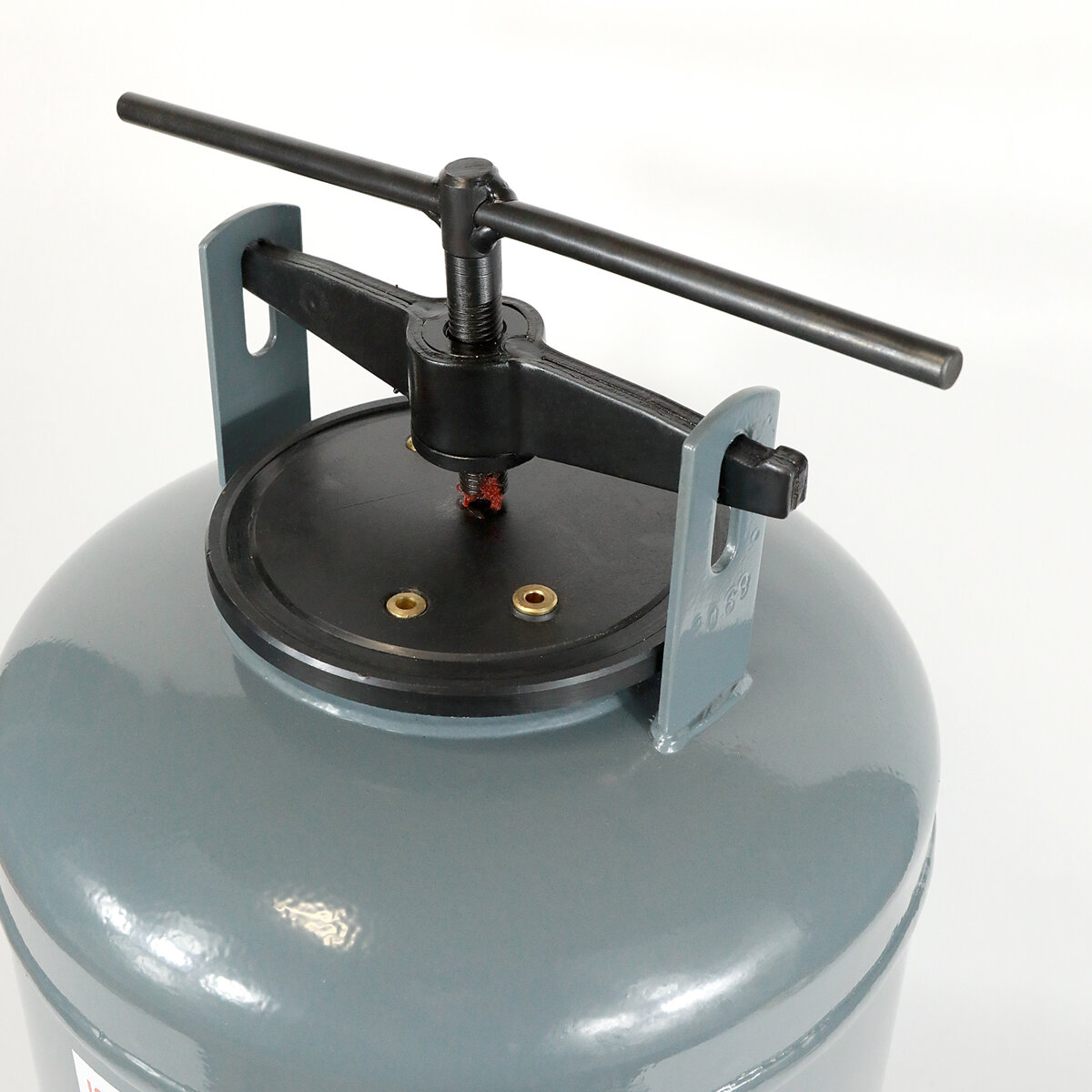 Крышка плотно прижимается винтовым прессом. Устройство имеет выпуклое дно, к которому приварена платформа для банок.