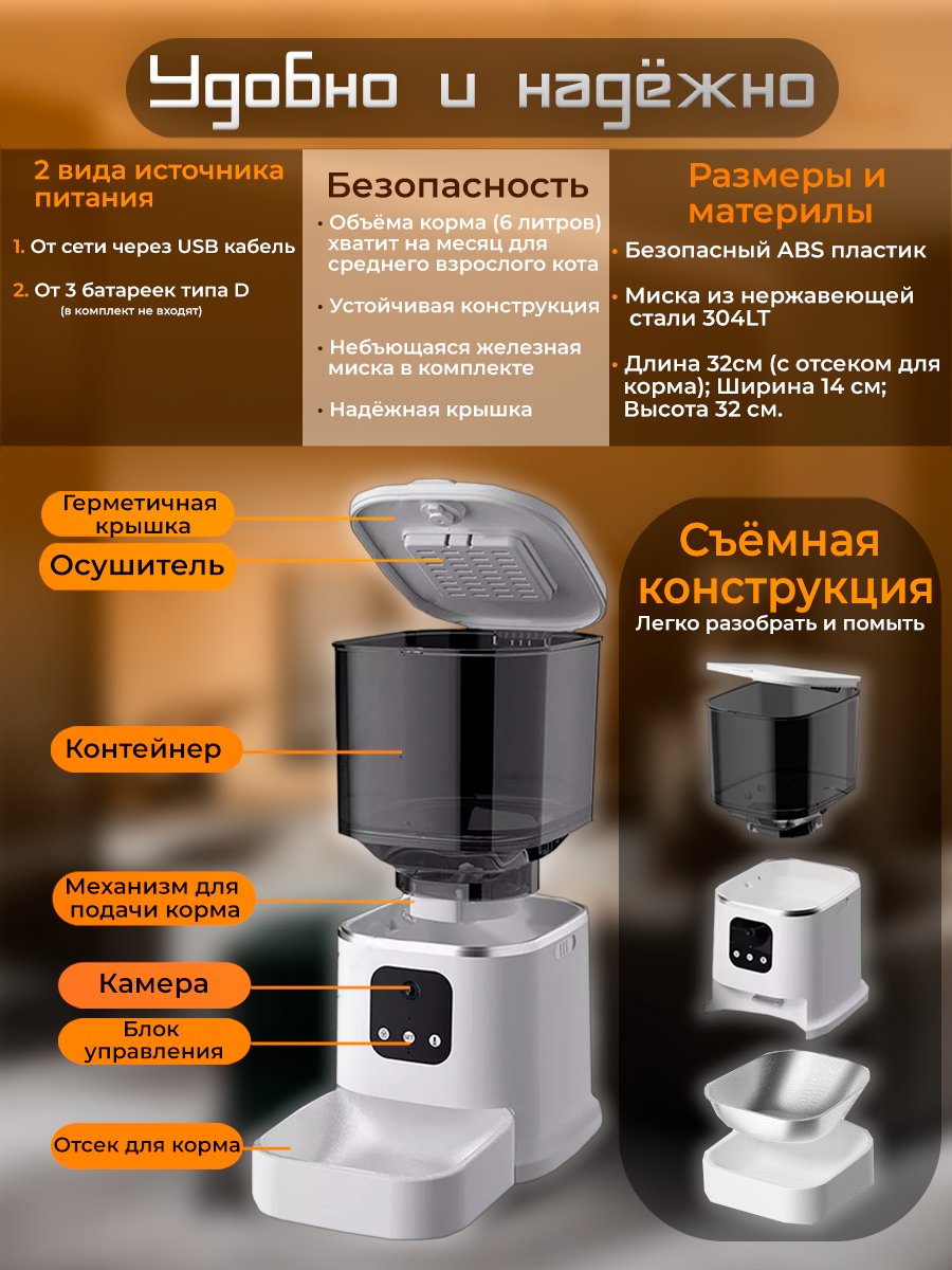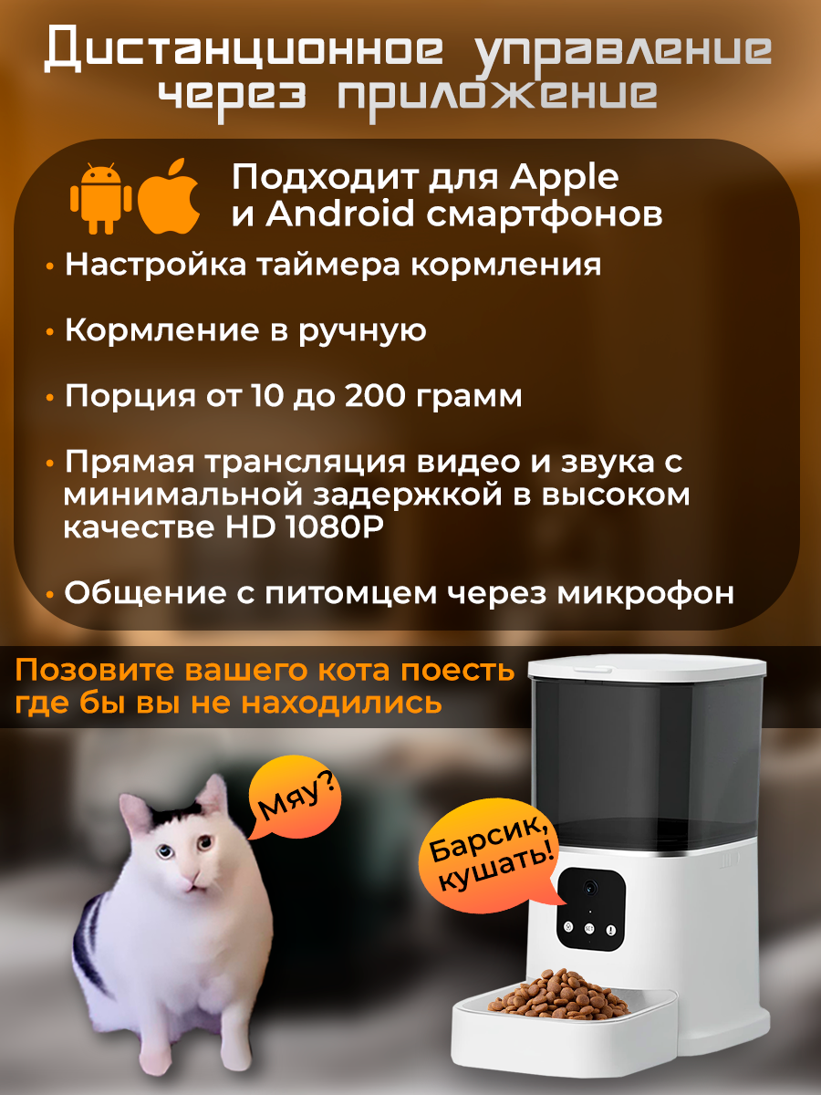 Автокормушка для кошек и собак с камерой, микрофоном и таймером Amazin Pet Feeder: сравнение цен, характеристики, фото, актуальное наличие и цены.