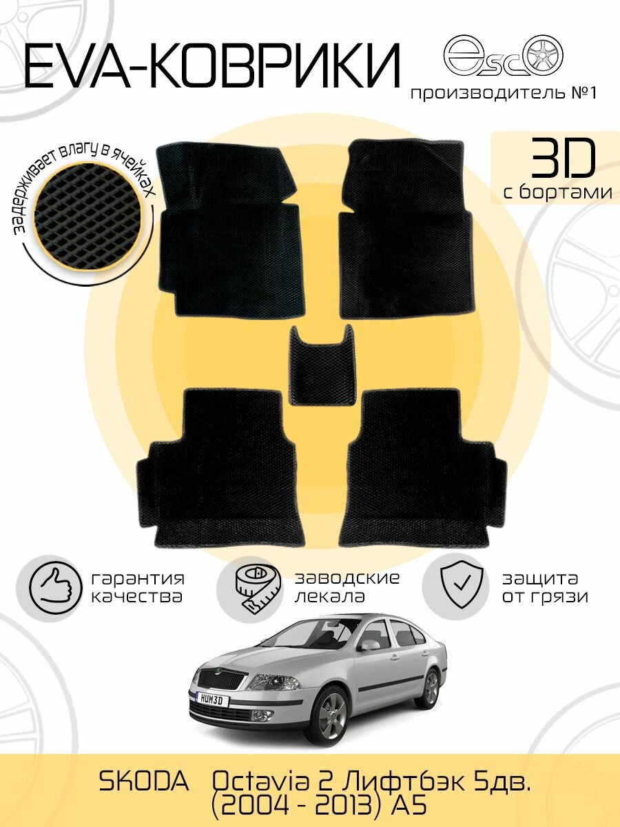 Купить Автоковрики Eva, Ева, Эва 3D для SKODA Octavia 2 Лифтбэк 5дв. (2004 — 2013) A5 Черные с доставкой по всей России.