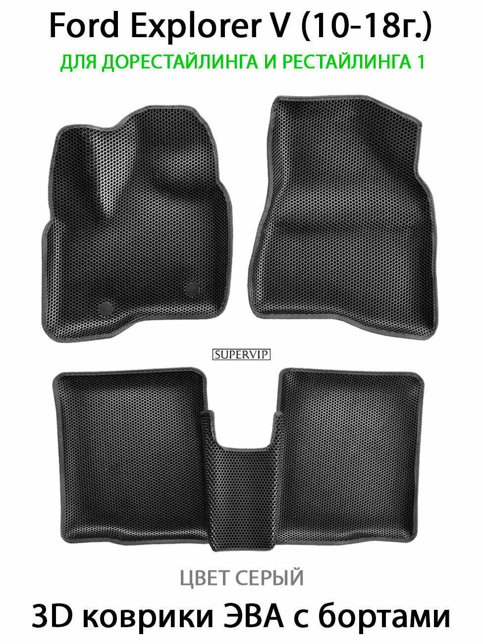 Автоковрики ЭВА с Бортами Ford Explorer V (10-18г.) Дорестайлинг и Рестайлинг 1. ЕВА соты SUPERVIP для Форд Эксплорер 5.: сравнение цен, характеристики, фото, актуальное наличие и цены.