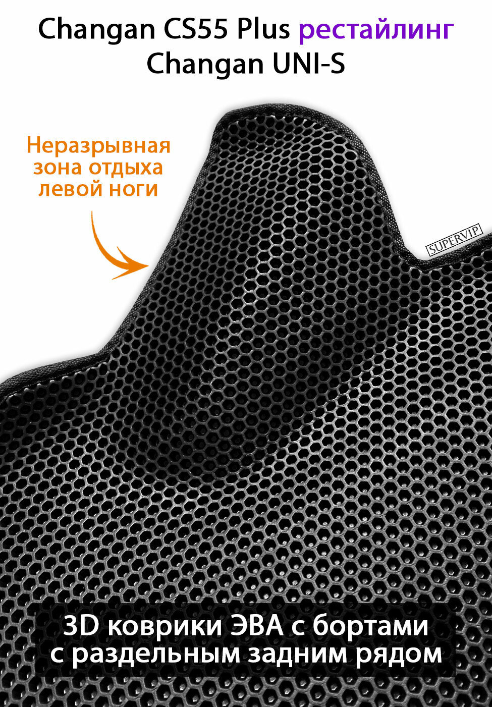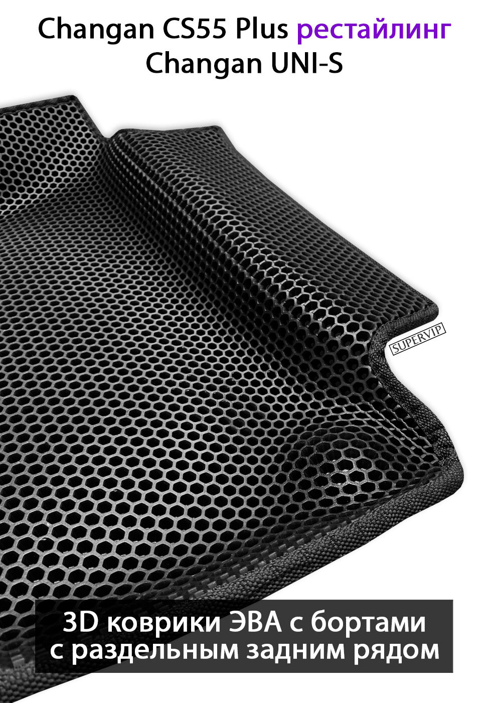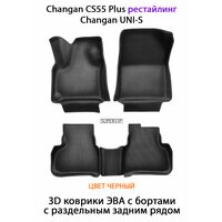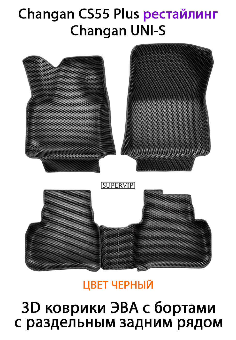 Купить Автоковрики ЭВА с раздельным задним рядом Changan CS55 Plus рестайлинг/ Changan UNI-S. Черный цвет. с доставкой по всей России.