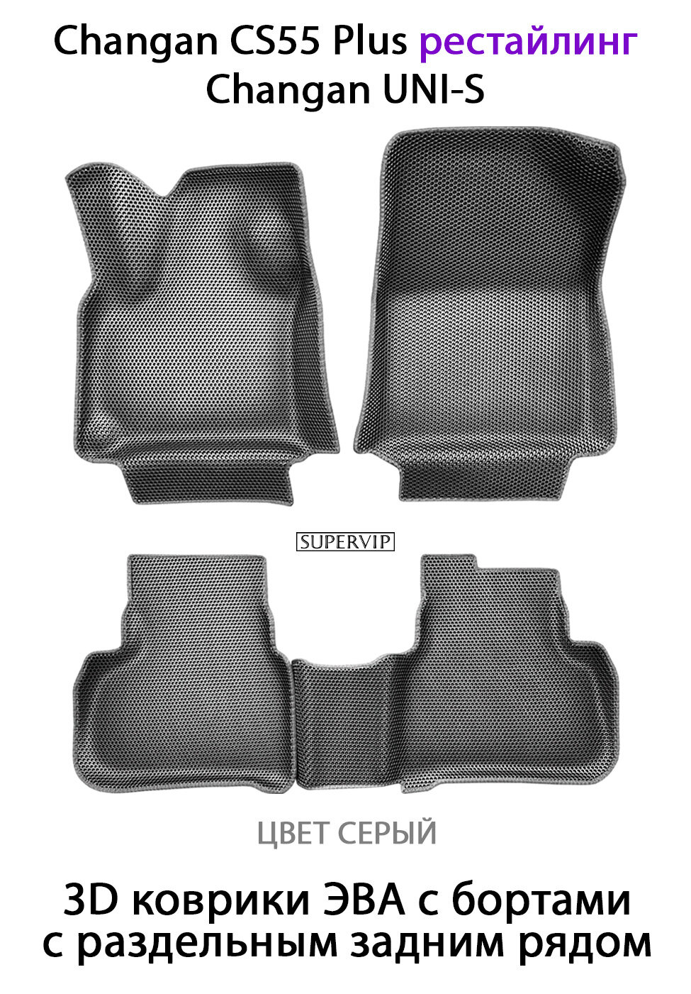 Купить Автоковрики ЭВА с раздельным задним рядом Changan CS55 Plus рестайлинг/ Changan UNI-S. Серый цвет. с доставкой по всей России.