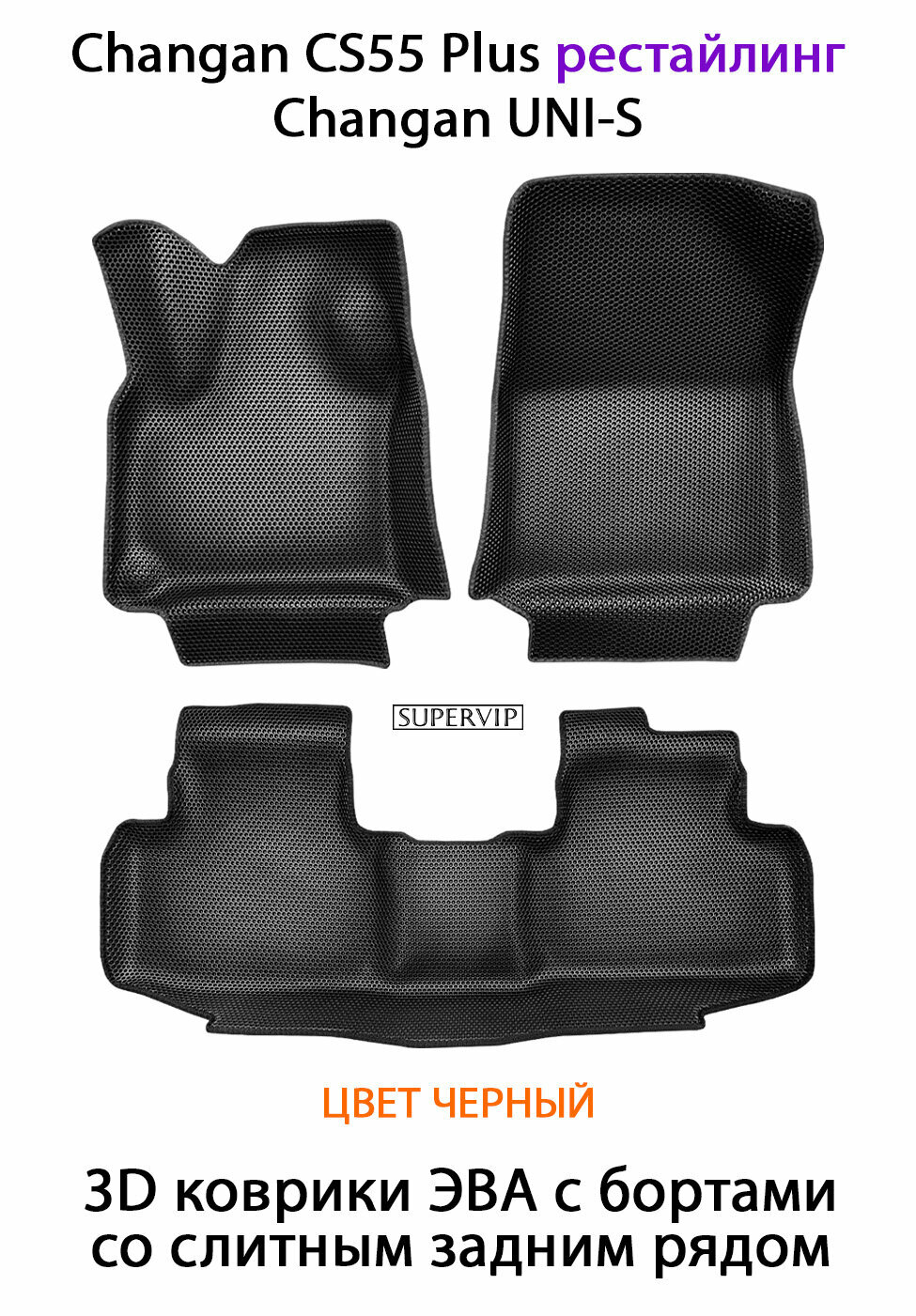 Купить Автоковрики ЭВА со слитным задним рядом для Changan CS55 Plus рестайлинг/ Changan UNI-S. Черный цвет. с доставкой по всей России.