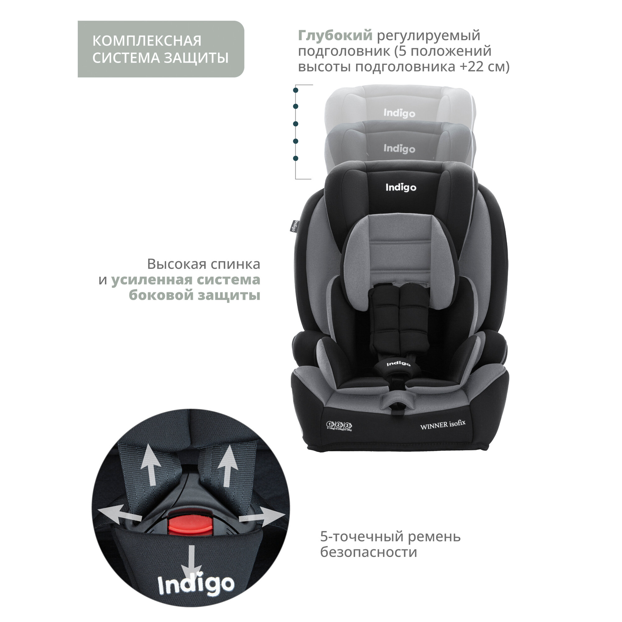 Автокресло детское WINNER ISOFIX от Indigo -это практичное просторное и удобное удерживающее устройство для детей в поездках в автотранспорте. Автомобильное кресло для возрастных групп 1,2,3, весовой категории от 9 до 36 кг. Кресло сертифицировано в соответствии с ТР ТС 018/2011 "О безопасности колесных транспортных средств". Стандарт безопасности ECE R44/04.