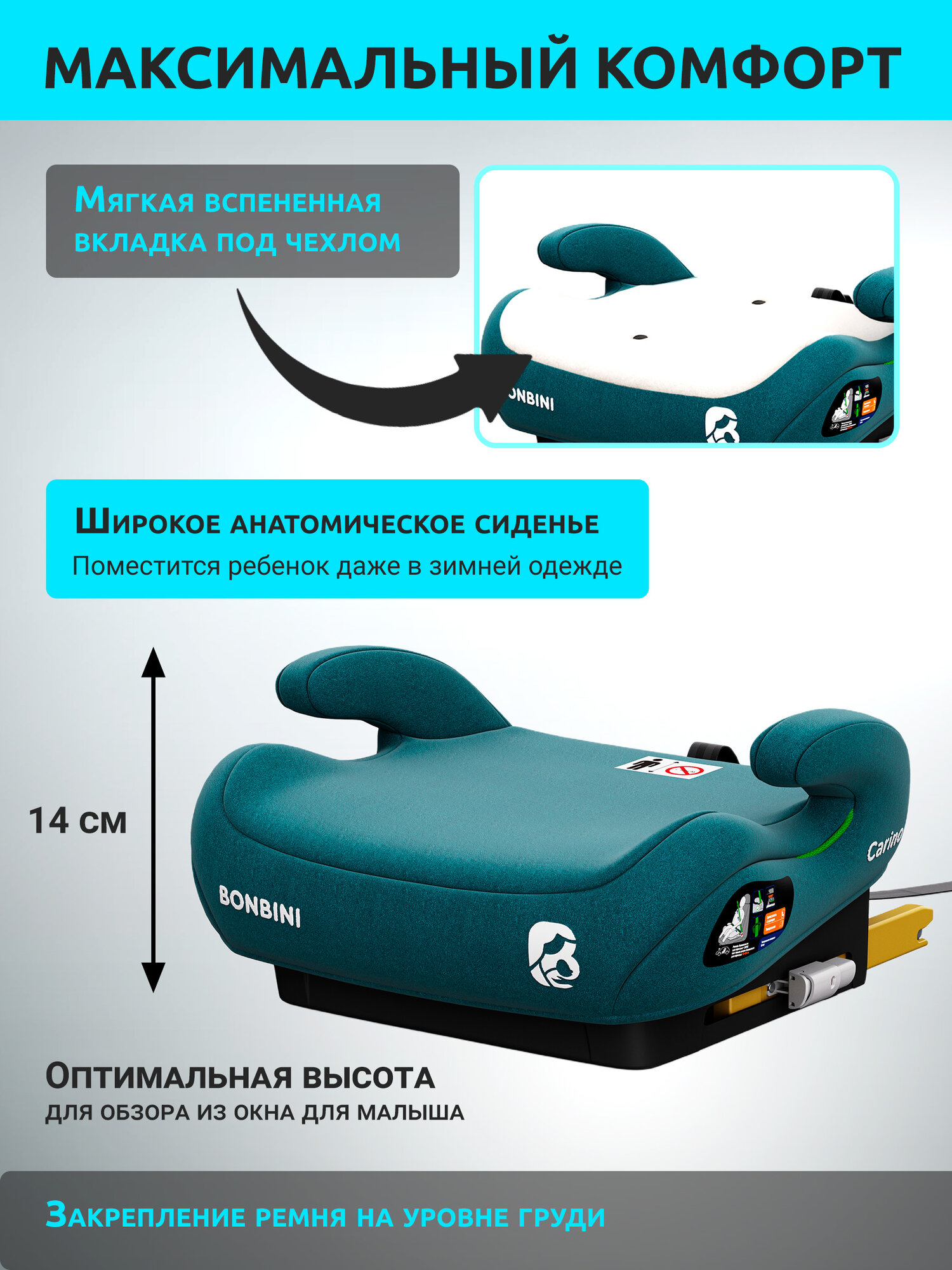 Купить Автокресло бустер BONBINI Carino Green BO-3231115, для группы 125-150 см, Isofix, зеленый с доставкой по всей России.