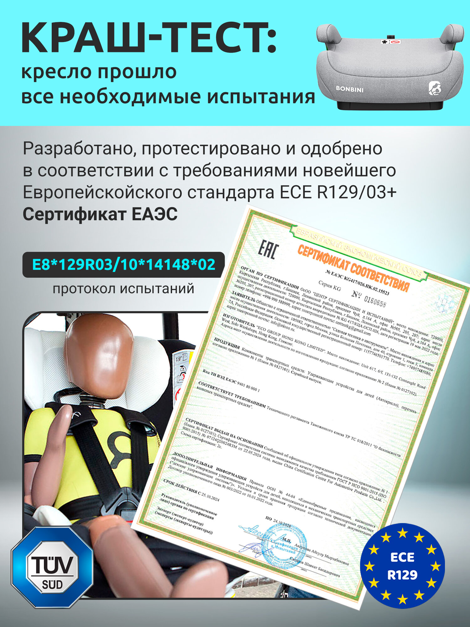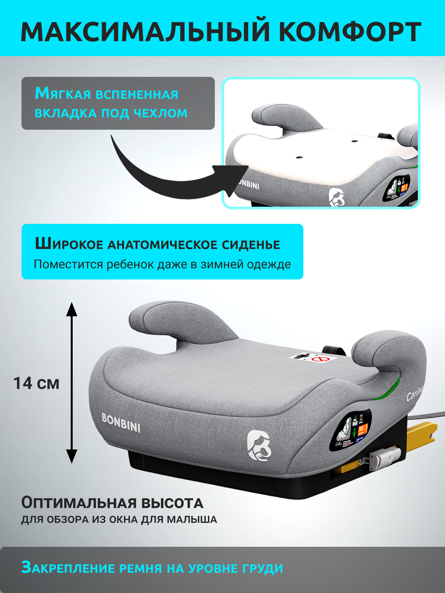 Купить Автокресло бустер BONBINI Carino Grey BO-3231113, группа 125-150 см, Isofix, серый с доставкой по всей России.