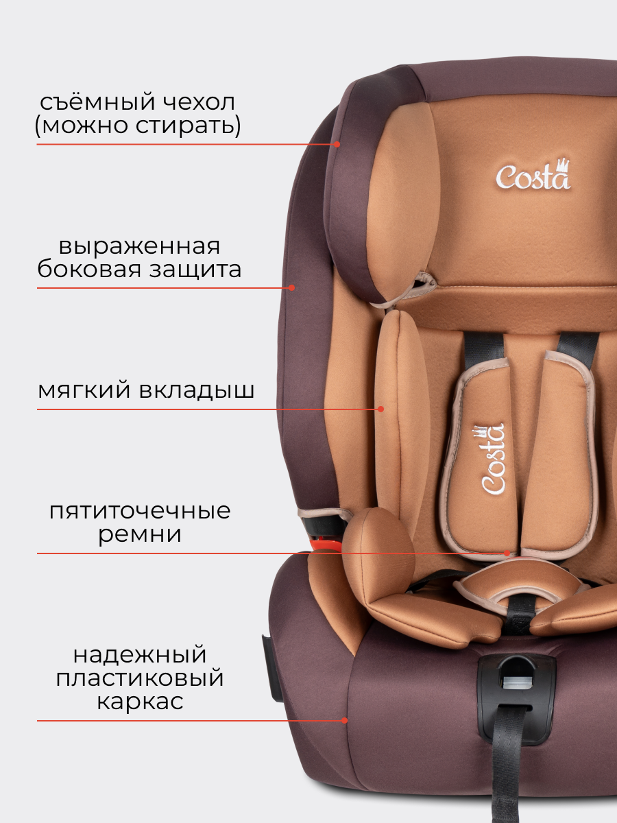 Купить Автокресло детское Costa HD-02, крепление ISOFIX, группа 1/2/3, от 9 до 36 кг, кофейный с доставкой по всей России.
