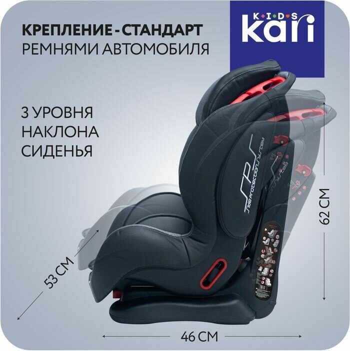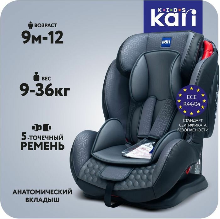Автокресло kari Kids детское для детей от 9 месяцев до 12 лет (9-36 кг) с пятиточечным ремнём безопасности, цвет серый: сравнение цен, характеристики, фото, актуальное наличие и цены.