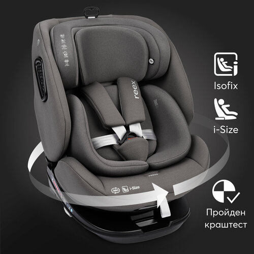 Купить Автокресло детское Reex Happy Baby, поворот на 360, от 0 до 12 лет, 0/1/2/3 (до 36 кг), Isofix, 40-150 см, графитовое с доставкой по всей России.