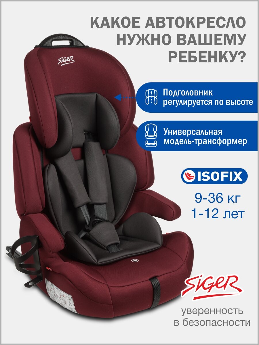 Автокресло детское Siger Стар ISOFIX LUX от 9 до 36 кг, с подстаканником, цвет вишня: сравнение цен, характеристики, фото, актуальное наличие и цены.