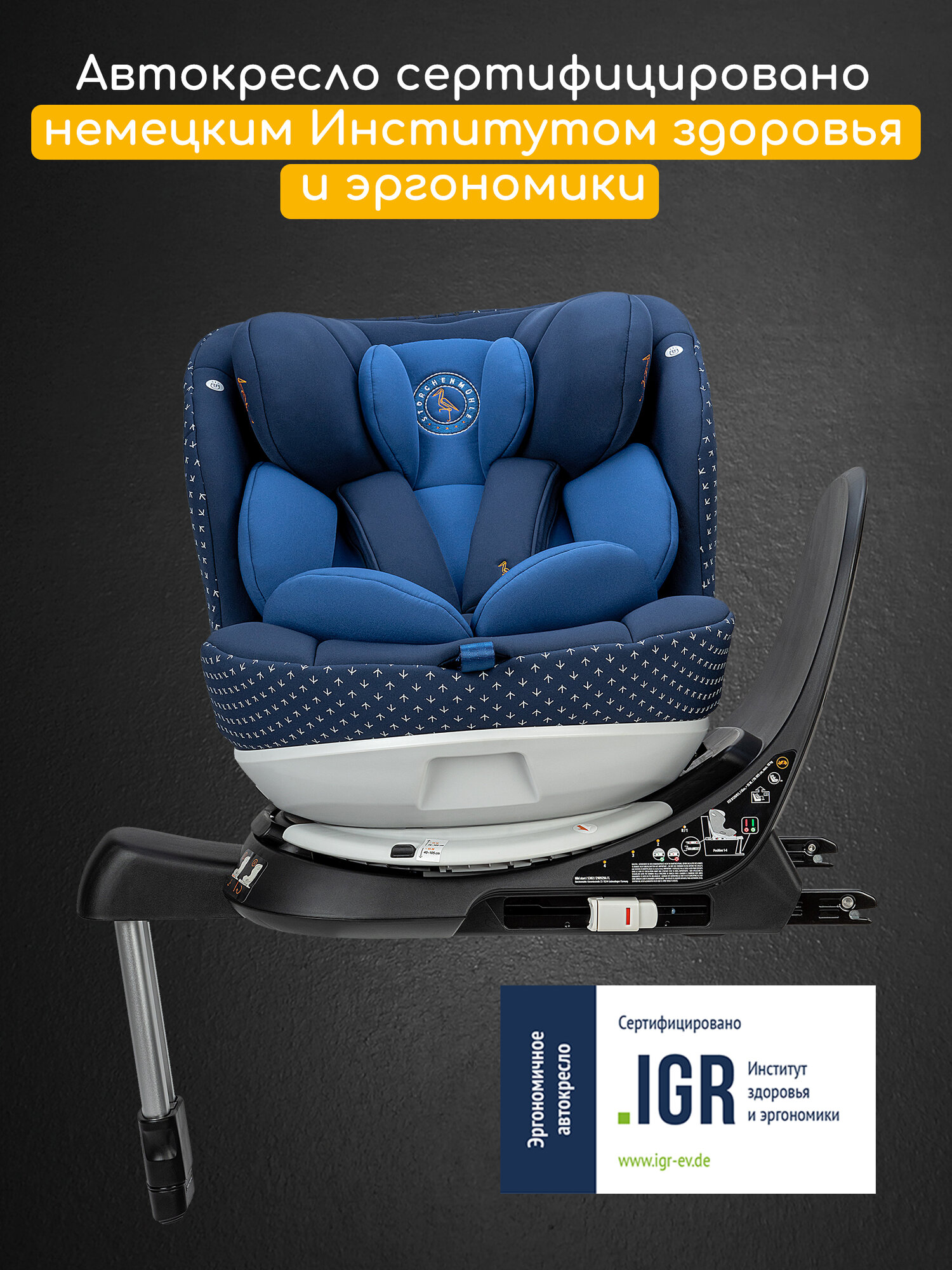- Большое сиденье анатомической формы. Автокресло сертифицировано немецким Институтом здоровья и эргономики.