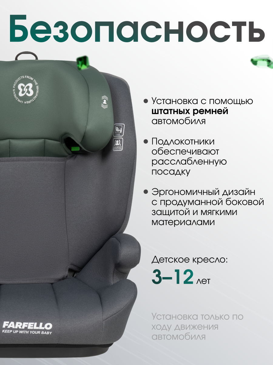 Купить Автокресло Farfello Le9, для детей 100-150 см, съемный чехол, серо-зелёное с доставкой по всей России.