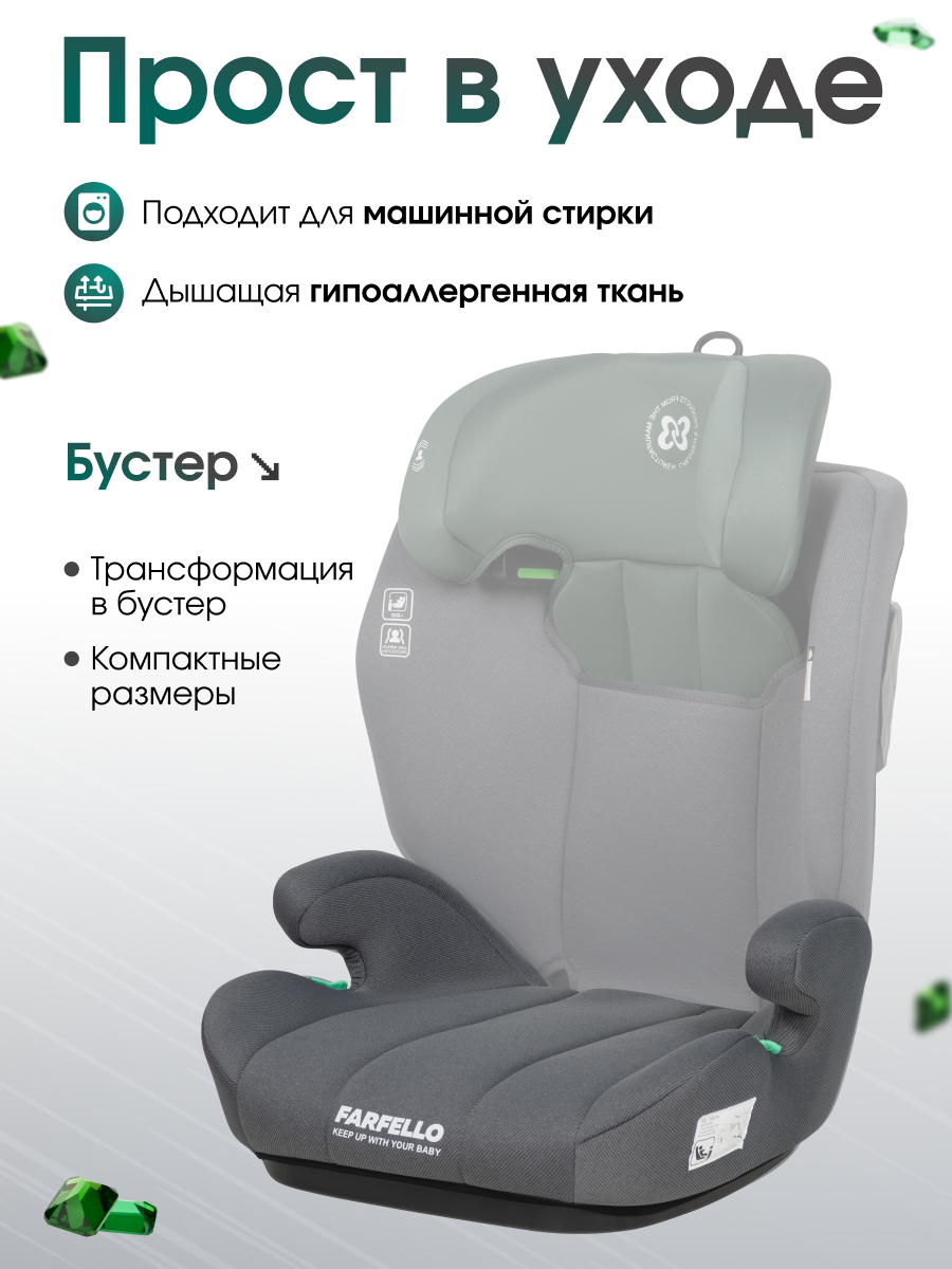 Автокресло Farfello Le9, для детей 100-150 см, съемный чехол, серо-зелёное: сравнение цен, характеристики, фото, актуальное наличие и цены.