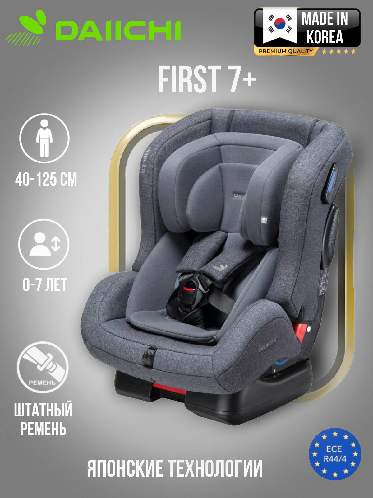 Купить Daiichi First 7, автокресло с рождения до 6-7 лет гр.0-1-2 (0-25 кг), цвет Charcoal (Plus) с доставкой по всей России.