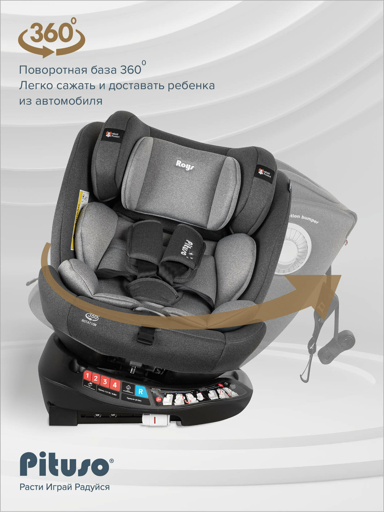 Автокресло поворотное детское Pituso «Roys +» от 0 до 12 лет, с положение для сна, isofix, темно-серый: сравнение цен, характеристики, фото, актуальное наличие и цены.