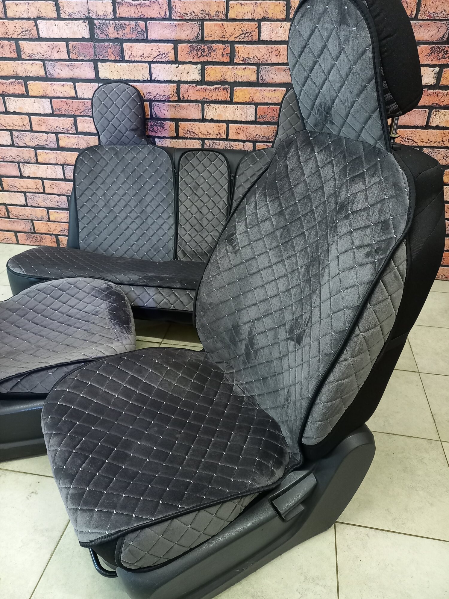 Купить Чехлы универсальные на авто /Лотос/ с закрытыми боками, на весь салон, велюр на силиконовой подложке, серые с доставкой по всей России.