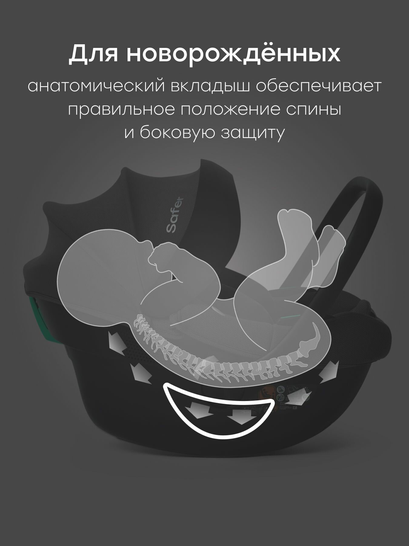 Купить Автолюлька для новорожденных Happy Baby Safer, с анатомическим вкладышем, группа 0+, автокресло-переноска, темно-серая с доставкой по всей России.