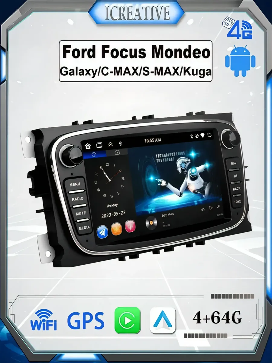 Купить Автомагнитола 2 дин Андроид,7 дюймов экран 4+64Гб WIFI+4G, форд/Ford Focus Mondeo C-MAX S-MAX Galaxy II Kuga с доставкой по всей России.