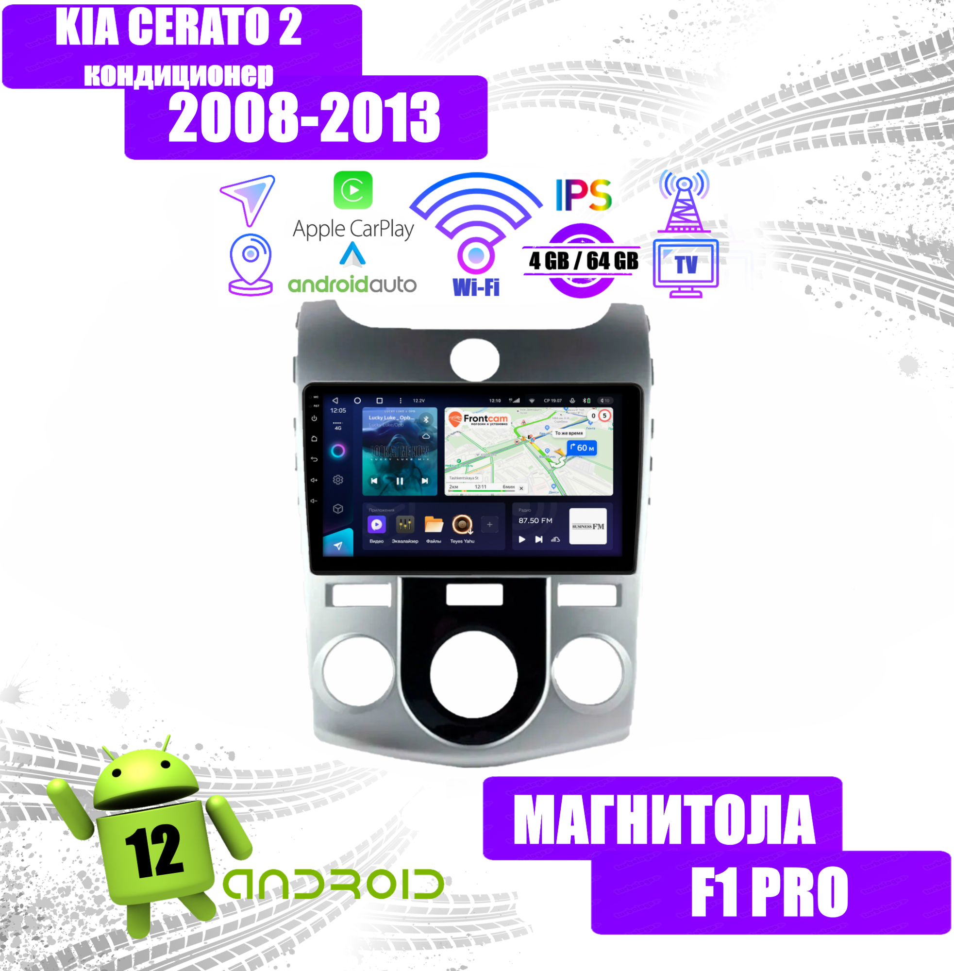 Купить Автомагнитола для KIA CERATO 2 кондиционер (2008-2013), 4/64 Gb, Android 12, CarPlay, Android Auto, Wi-fi, Bluetooth, GPS, IPS, сенсорные кнопки, поддержка кнопок на руле с доставкой по всей России.