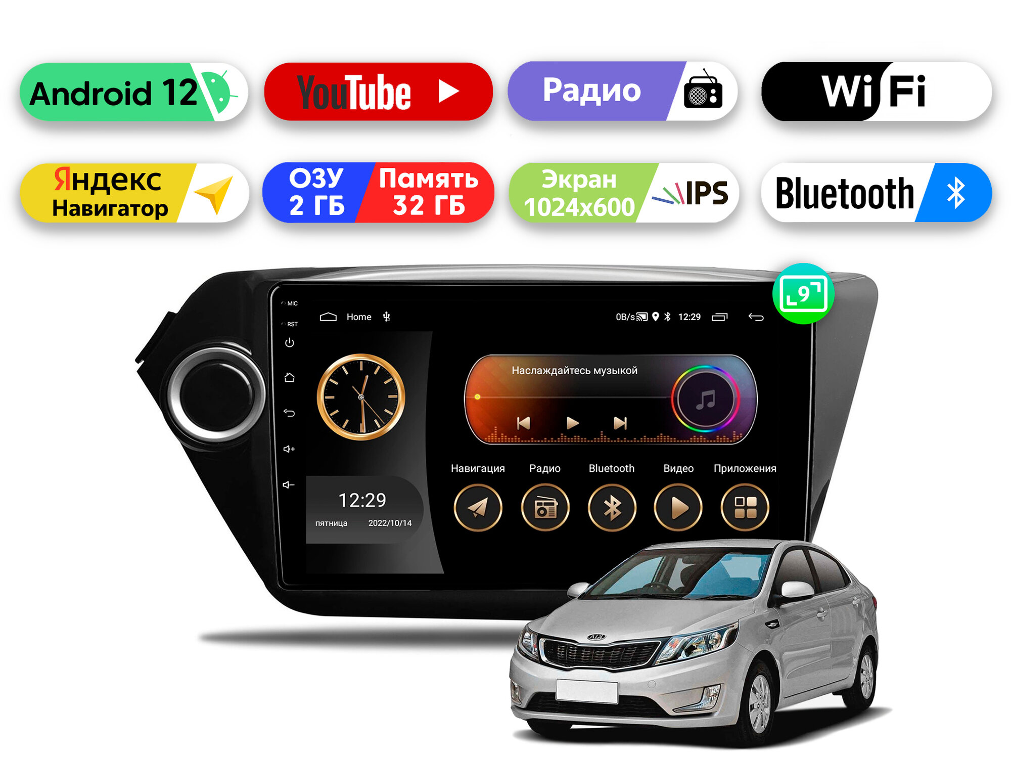 Автомагнитола для KIA Rio 3 (2011-2017), Android 12, 2/32 Gb, Wi-Fi, Bluetooth, Hands Free, разделение экрана, поддержка кнопок на руле: сравнение цен, характеристики, фото, актуальное наличие и цены.