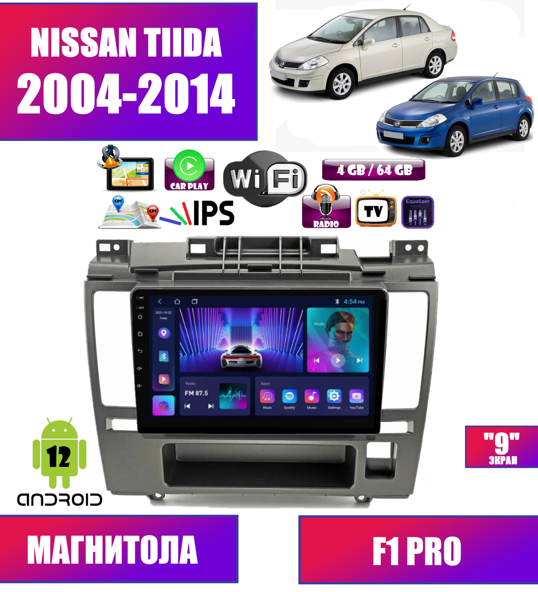 Автомагнитола для Nissan Tiida (2004-2014), Android 12, 4/64 Gb, Wi-Fi, CarPlay, Android Auto, Bluetooth, GPS, IPS, сенсорные кнопки, раздел экрана, поддержка кнопок на руле: сравнение цен, характеристики, фото, актуальное наличие и цены.