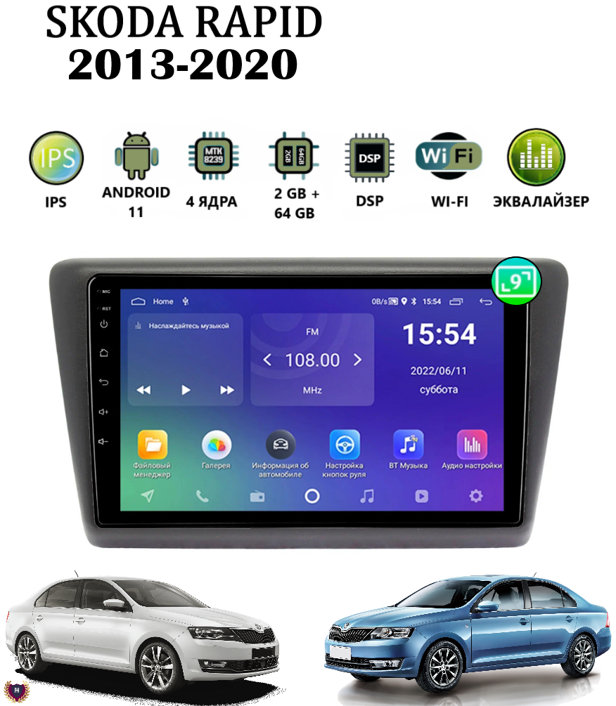 Купить Автомагнитола для Skoda Rapid (2013-2020), Android 11, 2/64 GB, GPS, Bluetooth, WiFi, IPS экран, FM, TV, сенсорные кнопки, поддержка кнопок на руле с доставкой по всей России.