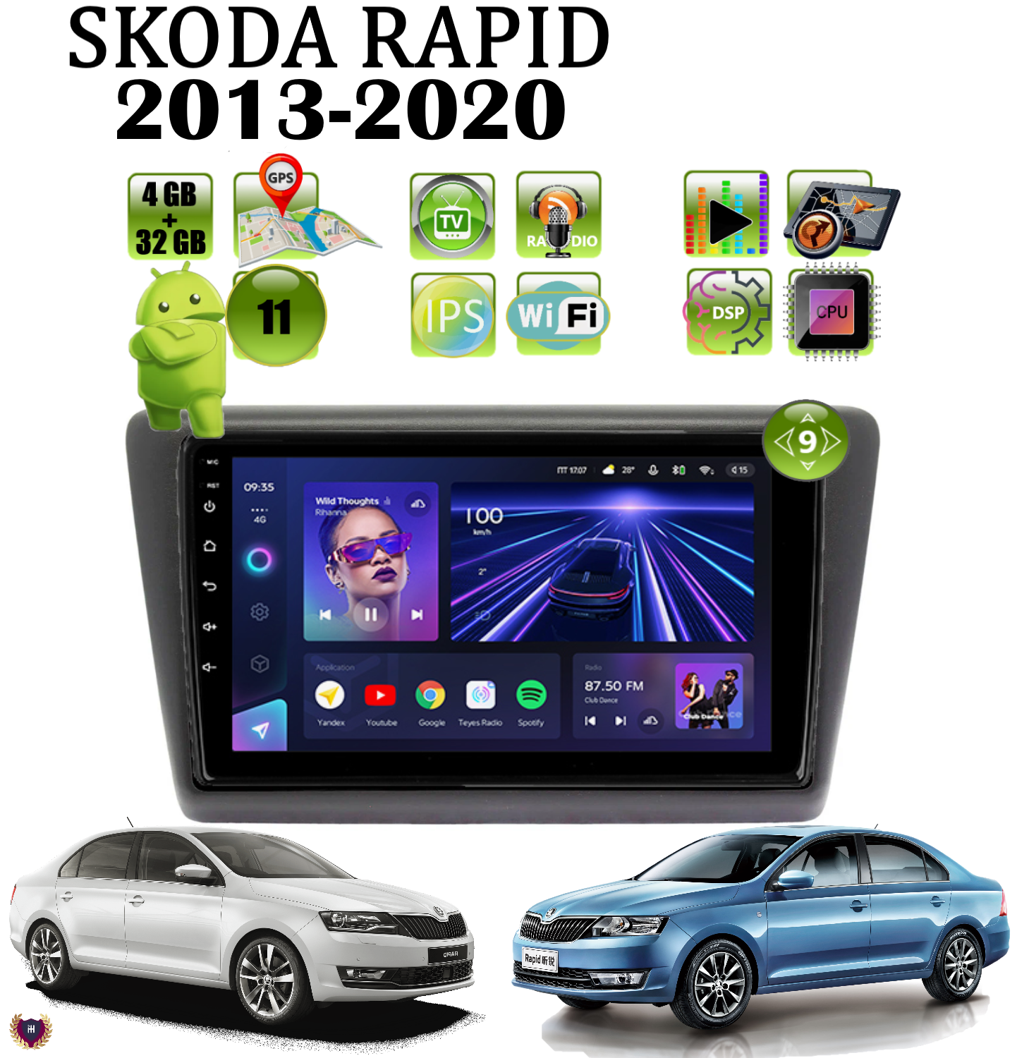 Купить Автомагнитола для Skoda Rapid (2013-2020), Android 11, 4/32 GB, GPS, Bluetooth, WiFi, IPS экран, FM, TV, сенсорные кнопки, поддержка кнопок на руле с доставкой по всей России.