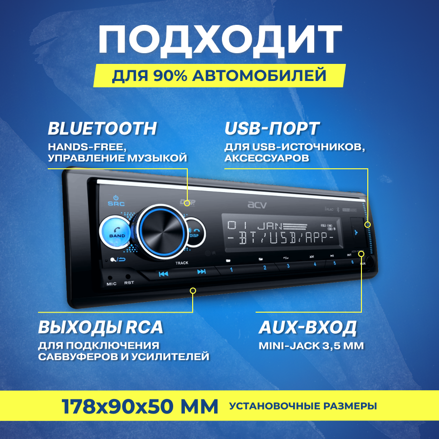 Автомагнитола с Bluetooth ACV ADX-903BM | DSP | FM/USB/SD/AUX/3 RCA: сравнение цен, характеристики, фото, актуальное наличие и цены.