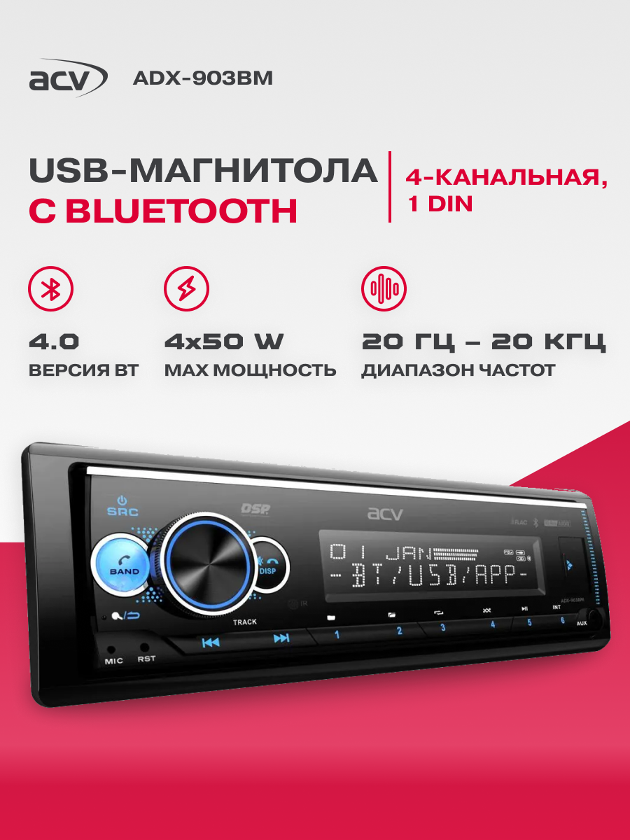 Купить Автомагнитола с Bluetooth ACV ADX-903BM | DSP | FM/USB/SD/AUX/3 RCA с доставкой по всей России.