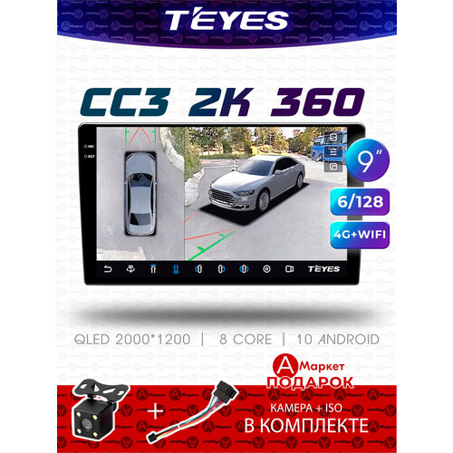 Автомагнитола Teyes CC3 6+128 Универсальная 9″ дюймов + камеры кругового обзора 360°