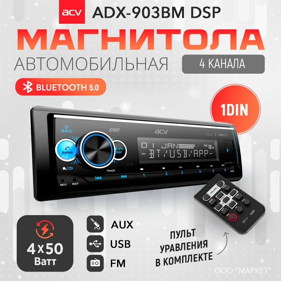 Автомагнитола-USB ACV ADX-903BM 4 канала, 50 Вт, 1DIN, пульт ДУ: сравнение цен, характеристики, фото, актуальное наличие и цены.