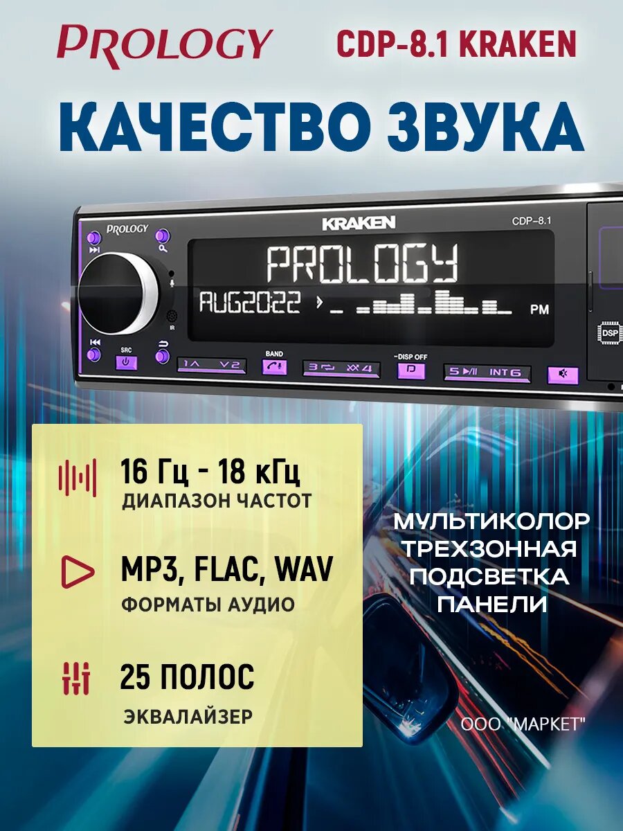 Автомагнитола-USB Prology CDP-8.1 KRAKEN 8х65 Вт, класс D, 1DIN: сравнение цен, характеристики, фото, актуальное наличие и цены.