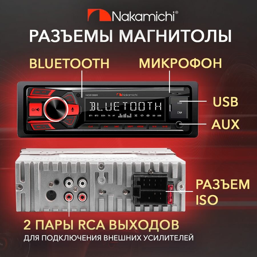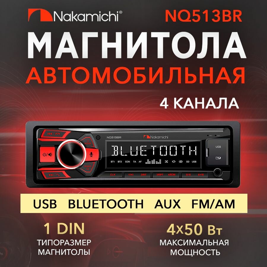 Ресивер-USB Nakamichi NQ513BR USB/AUX/ВТ 4-х канальный, 55 Вт, 1DIN: сравнение цен, характеристики, фото, актуальное наличие и цены.