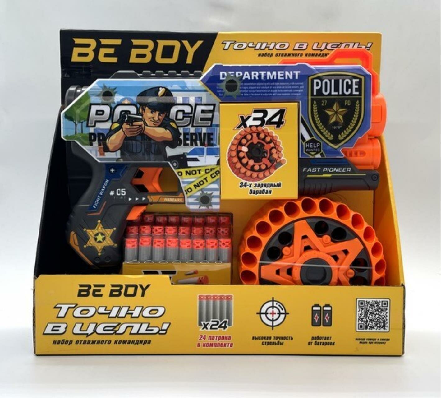 Автомат «BeBoy», 34-х зарядный барабан, 24 софт-патрона в комплекте, в к 33×7,5×31 см: сравнение цен, характеристики, фото, актуальное наличие и цены.