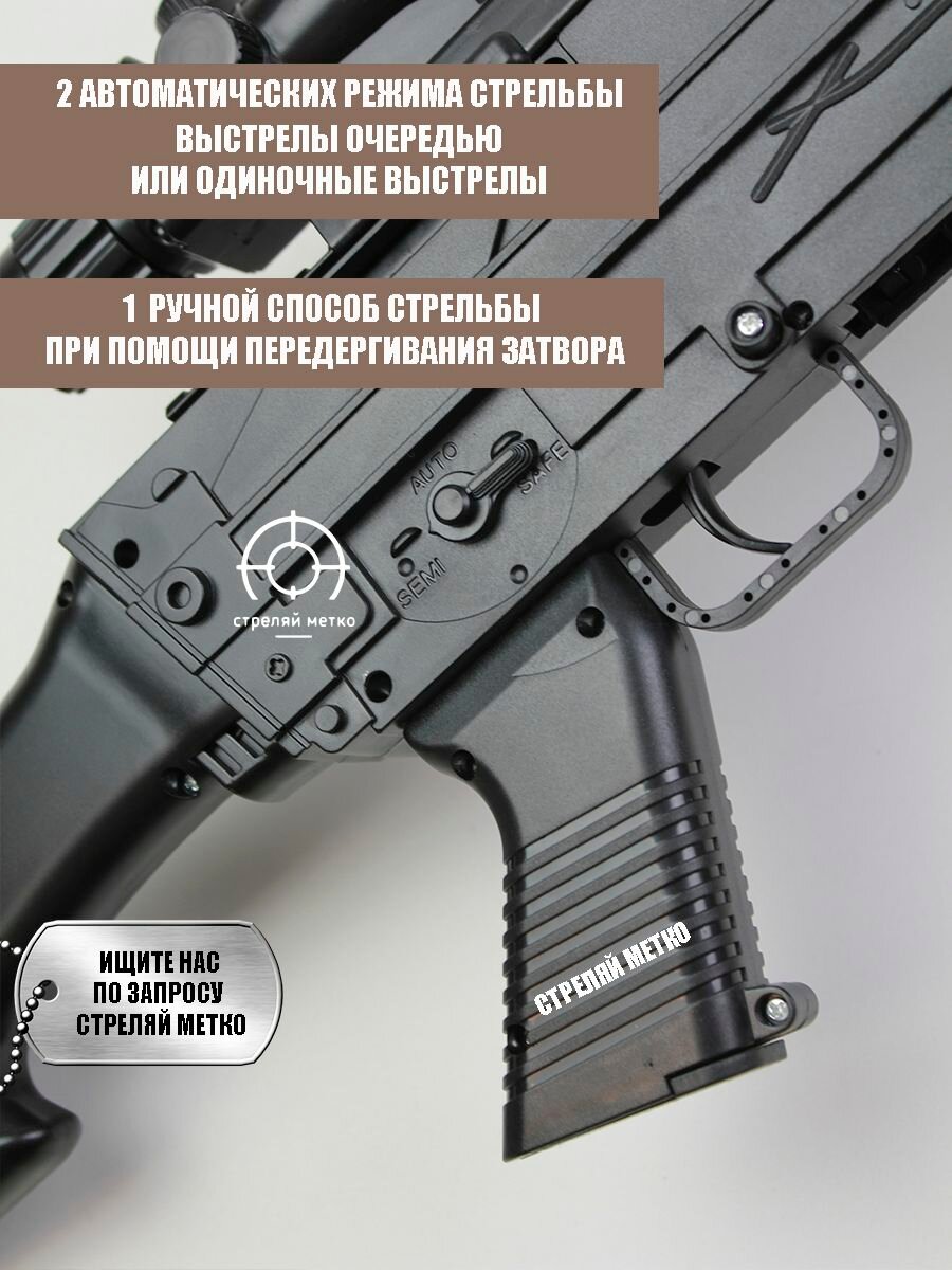 Вы ищете самый крутой игрушечный автомат с пульками орбизами? Вам повезло, потому что у нас есть именно то, что вам нужно! Наш детский автоматический пулемет с арбизами не только выглядит потрясающе, но оснащен автоматической стрельбой. Когда дело касается игрушки для подростков и детей, ничто не сравнится с нашим новым игрушечным автоматом М4А1 – настоящим оружием будущего! Наша снайперская винтовка с пульками орбиз для мальчиков M416 сочетает в себе все необходимое. Автомат на пульках orbeez штурмовая винтовка полностью безопасна для игры. Его водяные пульки шарики орбизы полностью безвредны и не представляют опасности для детей. Кроме того, автомат имеет функцию стрельбы без перезарядки. Этот детский электрический игрушечный автомат на арбузах идеально подойдет для девочек и мальчиков всех возрастов. Благодаря стильному дизайну и удобной эргономике оружия, этот пистолет orbeez станет неотъемлемой частью их игрового опыта. Он выполнен в современном дизайне, который привлекает внимание и позволит ребенку почувствовать себя настоящим героем из популярных видеоигр. Этот гидрогелевый пистолет – пулемет арбуз, также отлично подходит для игры на улице и в доме. Стреляйте в мишени из пистолета с арбизами пулемета, создавайте свои собственные игры. Возможности винтовки с пульками бесконечны! Подарите вашему ребенку настоящий подарок, который он никогда не забудет. Этот игрушечный orbeez автомат с аккумулятором станет его верным компаньоном во всех его приключениях и сделает игру с оружием orbeez незабываемой. Закажите сейчас наш игрушечный автамат с пульками похожий на ак 47 и подарите своему ребенку незабываемые моменты радости и веселья. Эта крутая игрушка для детей станет идеальным подарком на день рождения, Новый год или любой другой праздник. Не упустите возможность порадовать своего ребенка лучшим подарком, который они когда-либо получали!