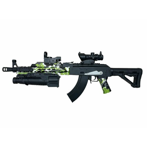 Орбиз автомат Калашникова 47 (АК74) стреляющий гидрогелевыми шариками 7-8 мм. Автомат комплектуется оптикой и дополнительным глушителем.