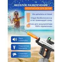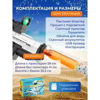Особенности этого водяного пистолета включают в себя возможность менять бак на любую другую бутылочку, что расширяет функциональность устройства. Точный прицел с подсветкой и звуком выстрела добавляют реалистичности в игру. Автонаполнение воды и возможность стрелять очередью делают игру еще более динамичной и захватывающей.