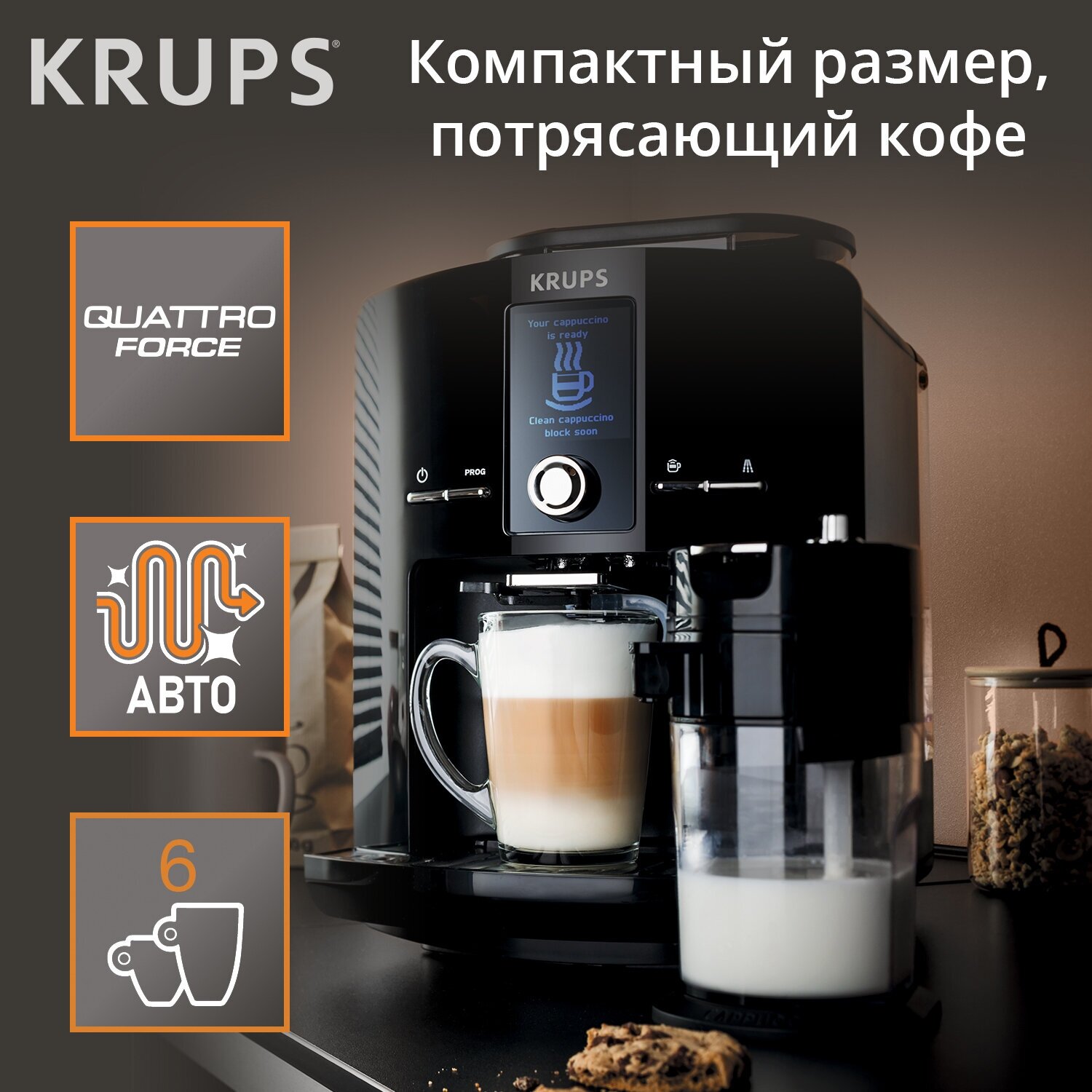 Купить Автоматическая кофемашина Krups Espresseria EA829810, 1450 Вт, 15 Бар, 3 степени помола с доставкой по всей России.