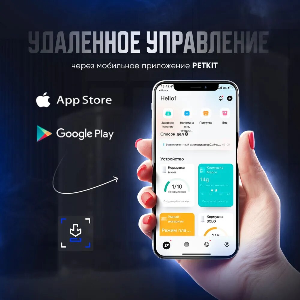 Синхронизируется с приложением Petkit и накормит питомца по расписанию.