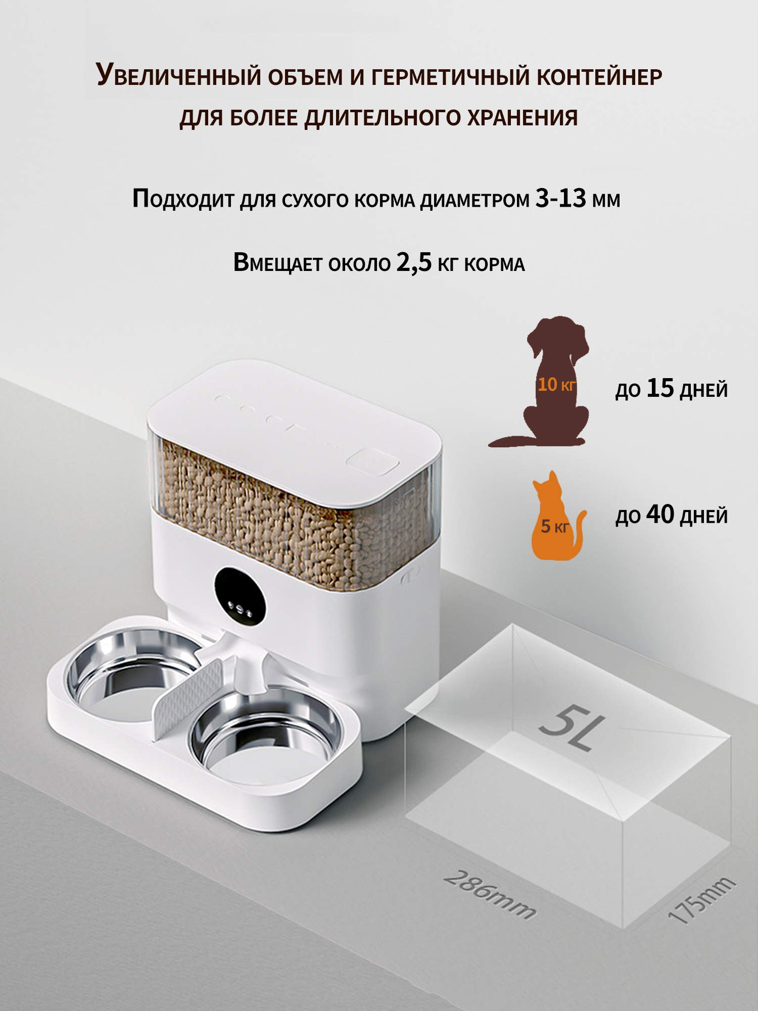 | Дополнительная информация | апись голоса до 10 сек., Управление по Wi-Fi, Управление через смартфон, Установка графика кормления |