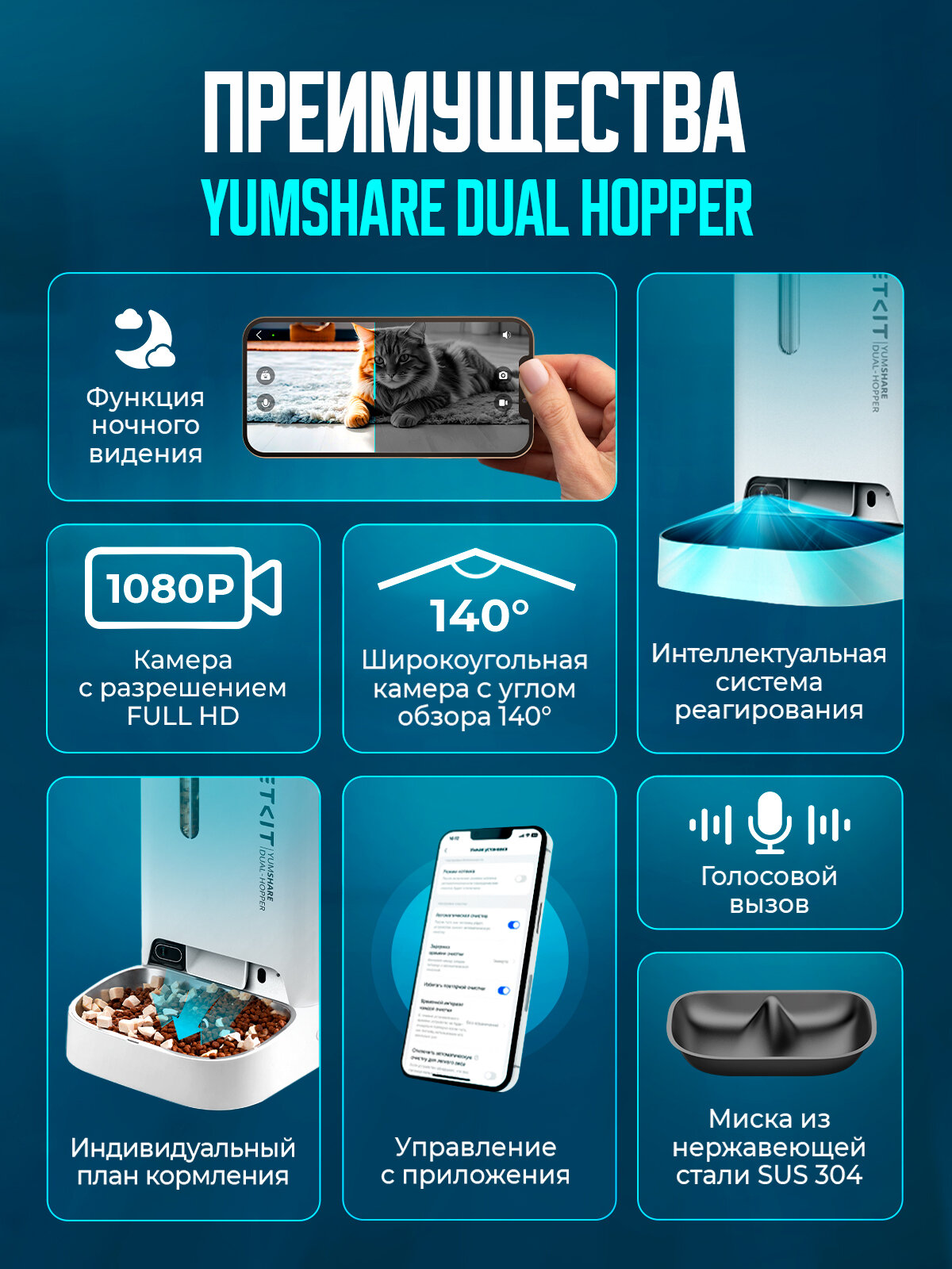 Умная автоматическая кормушка Petkit с камерой YumShare Dual Hopper, белый: сравнение цен, характеристики, фото, актуальное наличие и цены.