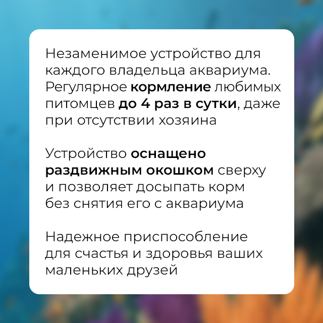 Подарите своим рыбкам заботу и комфорт с автоматической кормушкой! Закажите прямо сейчас и обеспечьте своим питомцам идеальные условия для жизни!