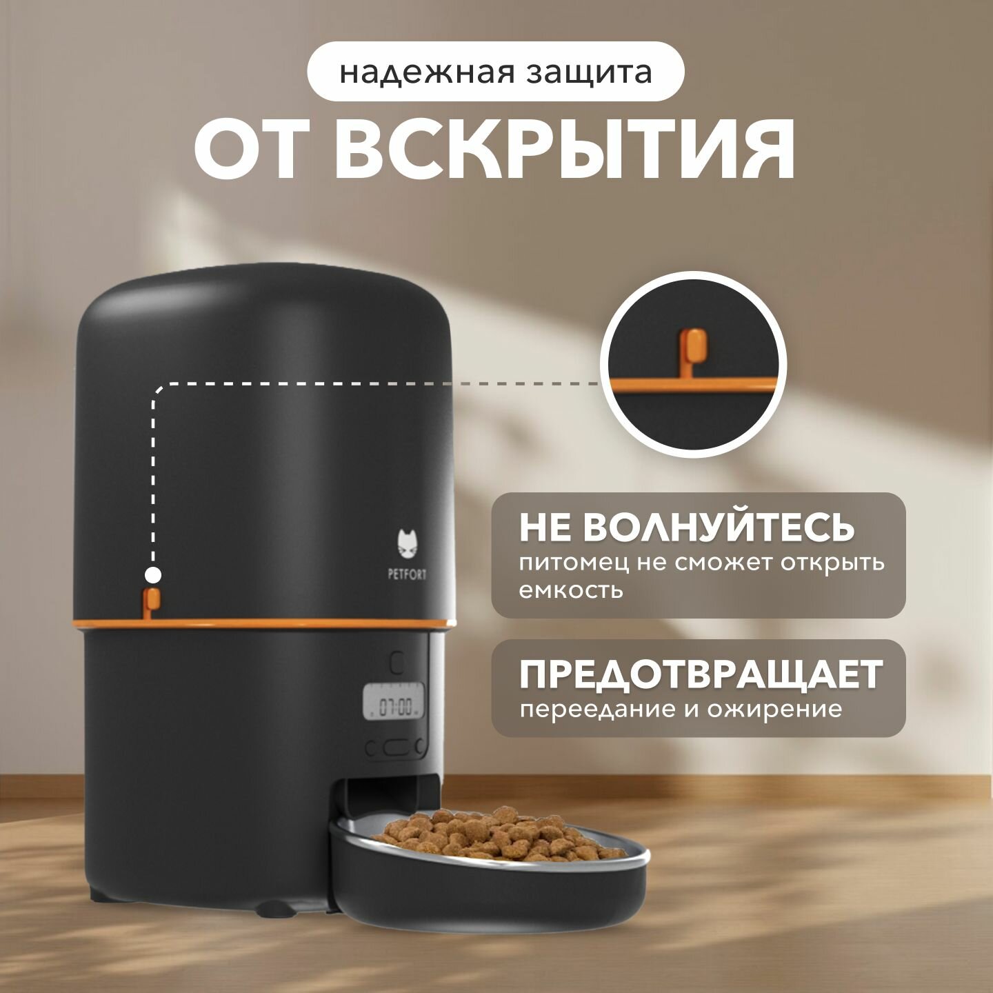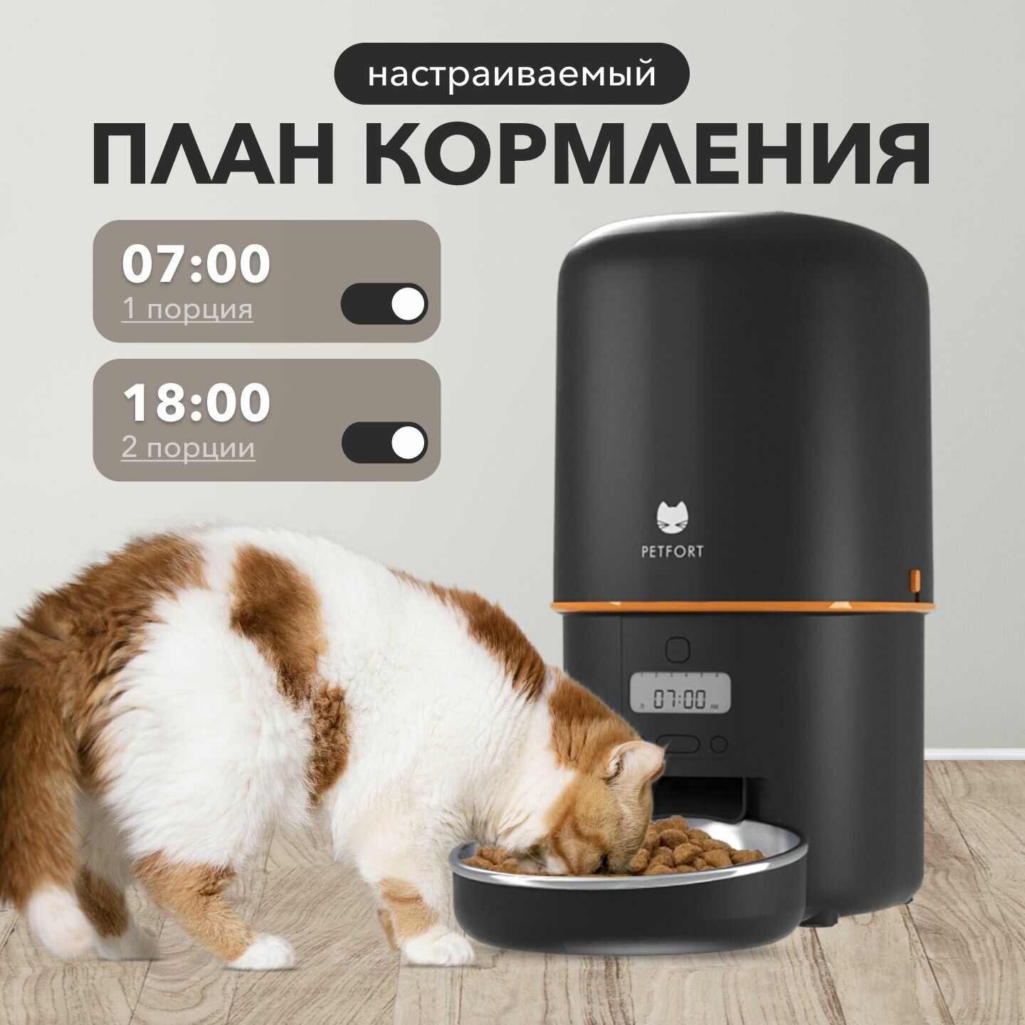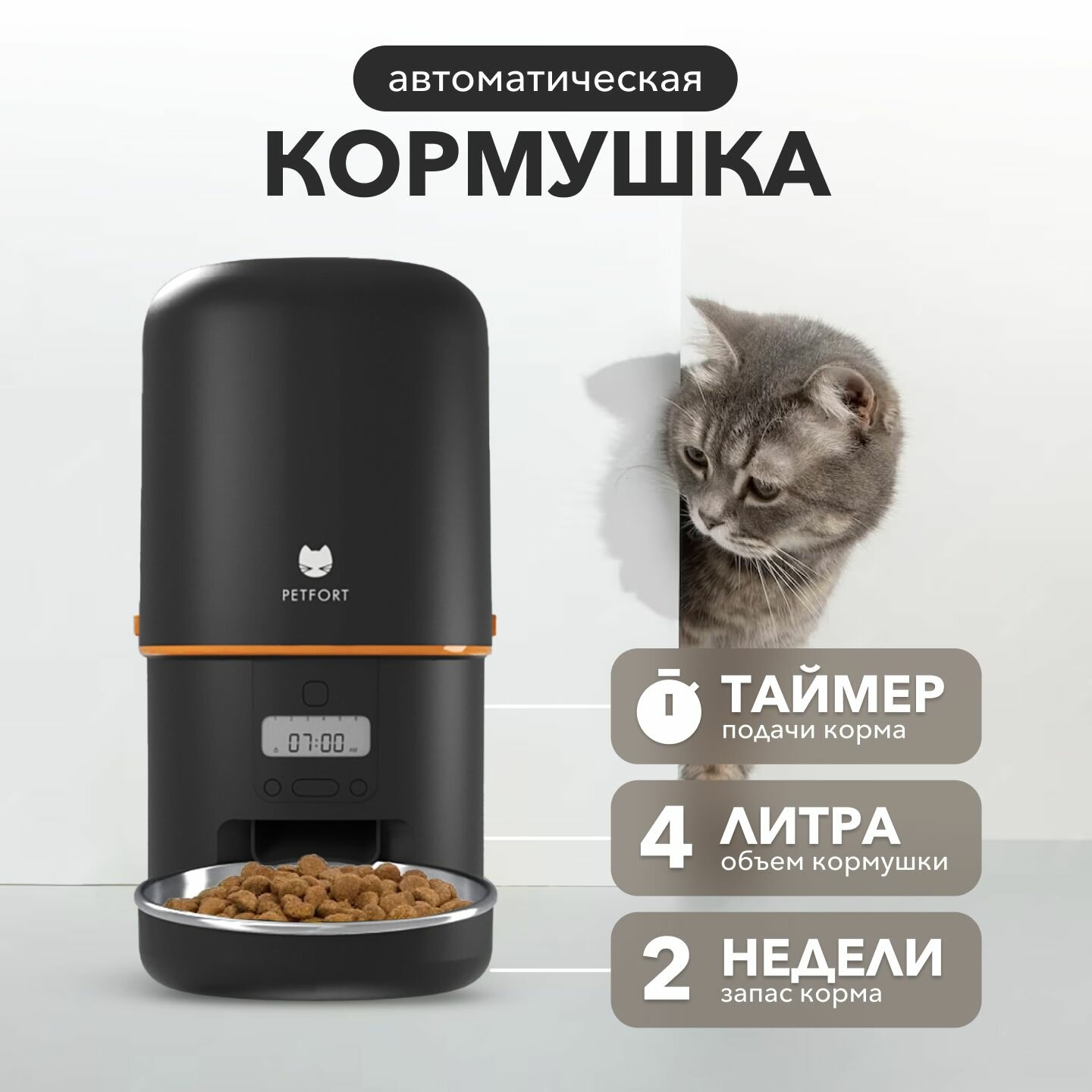 Умная автоматическая кормушка бренда PETFORT для домашних животных с миской из нержавеющей стали помогает заботиться о Вашем питомце. Объем миски составляет 4 литра, что позволяет кормить питомца в течение длительного времени. Пушистый друг больше не будет будить Вас посреди ночи, так как автоматическая кормушка для домашних животных с таймером позаботится, чтобы корм был насыпан вовремя. Кормушка следит за тем, чтобы Ваши питомцы питались регулярно и правильно, даже если Вы находитесь вдали от дома. Можно установить необходимое количество порций корма на одно кормление, а также частоту кормления - это гарантирует полное удовлетворение потребностей Вашего питомца! Кормушка также имеет надежную защиту от вскрытия. Не волнуйтесь, Ваш питомец не сможет открыть емкость. Закрытая конструкция позволяет сохранить корм свежим и чистым, поскольку ограничивает доступ пыли и грязи. Автоматическая кормушка очень красивая, стильная и практичная, поэтому без труда впишется в любой интерьер. Кормушка работает как от сети, так и от батареек типа D (не входят в комплект). Ваши домашние животные заслуживает лучшего. Доверьтесь PETFORT, чтобы Ваши пушистые друзья были здоровыми, счастливыми и вовремя накормленными!