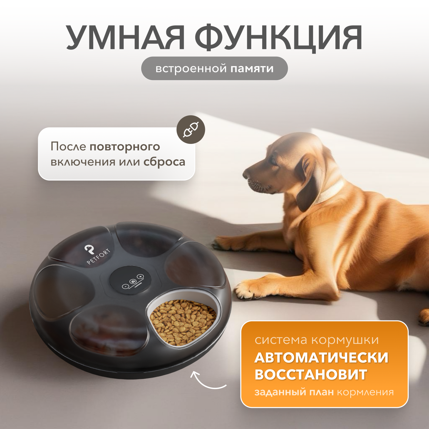 Купить Автоматическая кормушка для животных PETFORT на 6 кормлений, NO Wi-Fi, черная с доставкой по всей России.