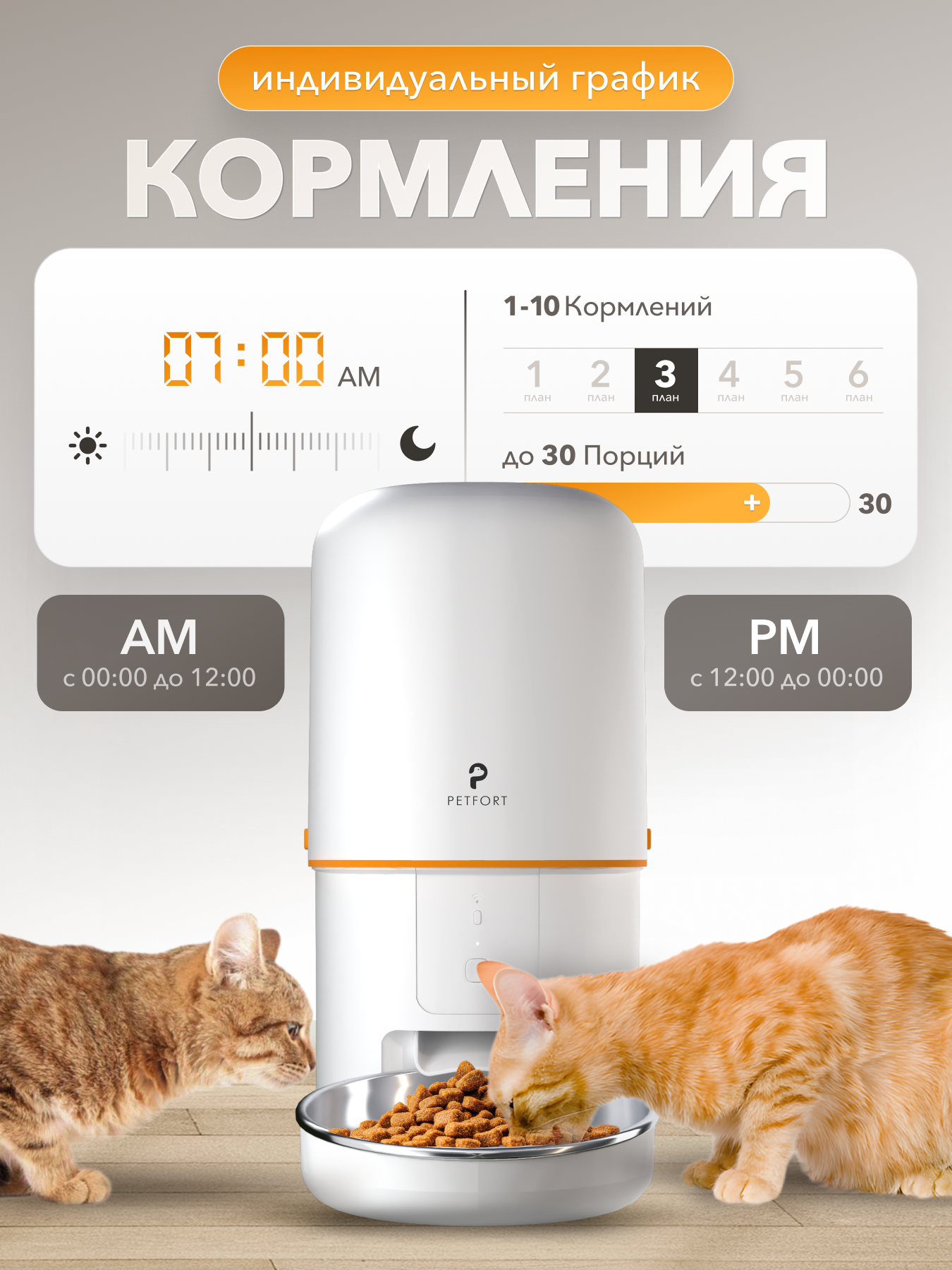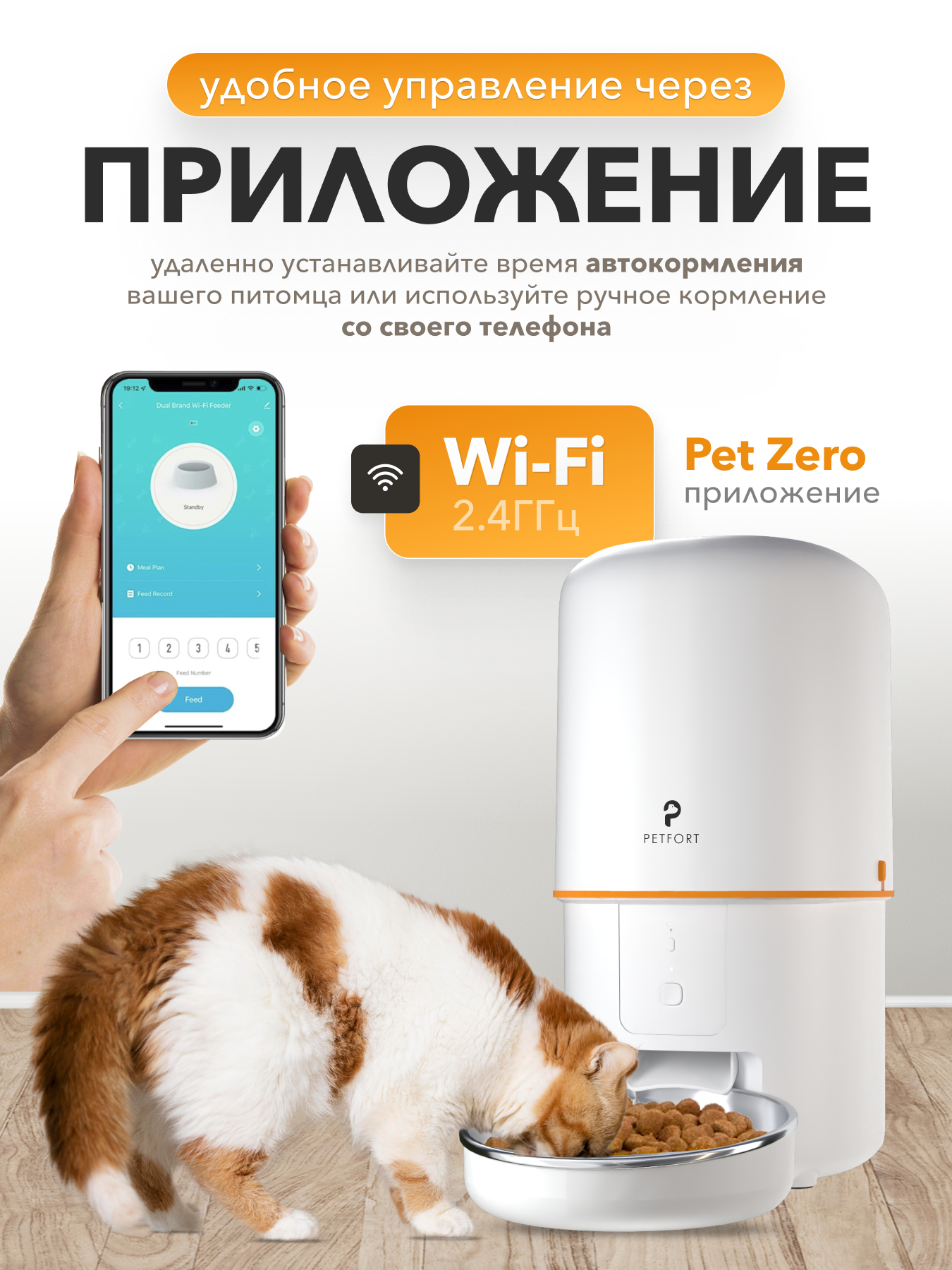 Автоматическая кормушка для животных PETFORT Wi-Fi, 4 литра, белая: сравнение цен, характеристики, фото, актуальное наличие и цены.