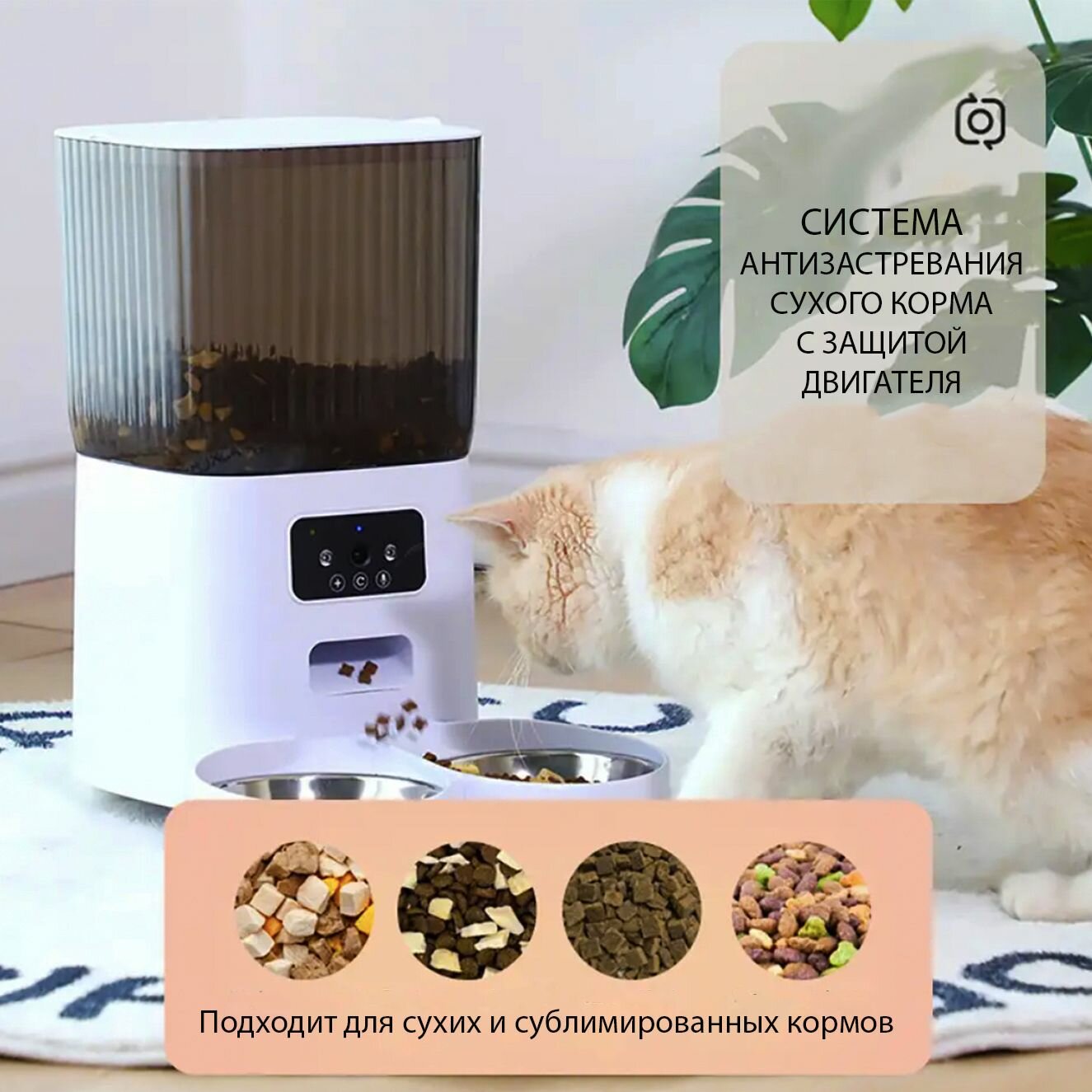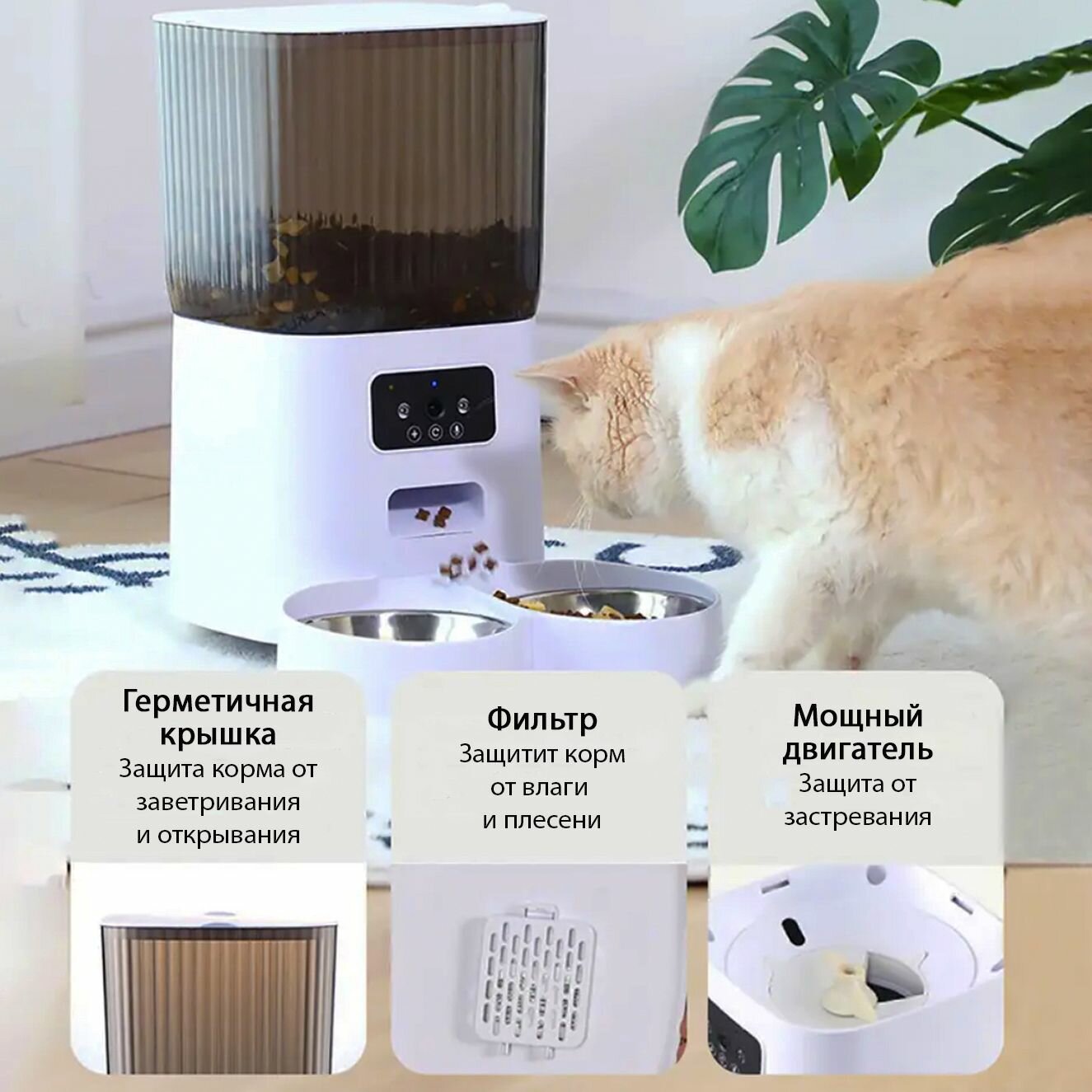 Купить Автоматическая кормушка с камерой (Две миски) 5 литров для кошек и собак, на ножках, Smart Life от MY PET`S GADGETS с доставкой по всей России.