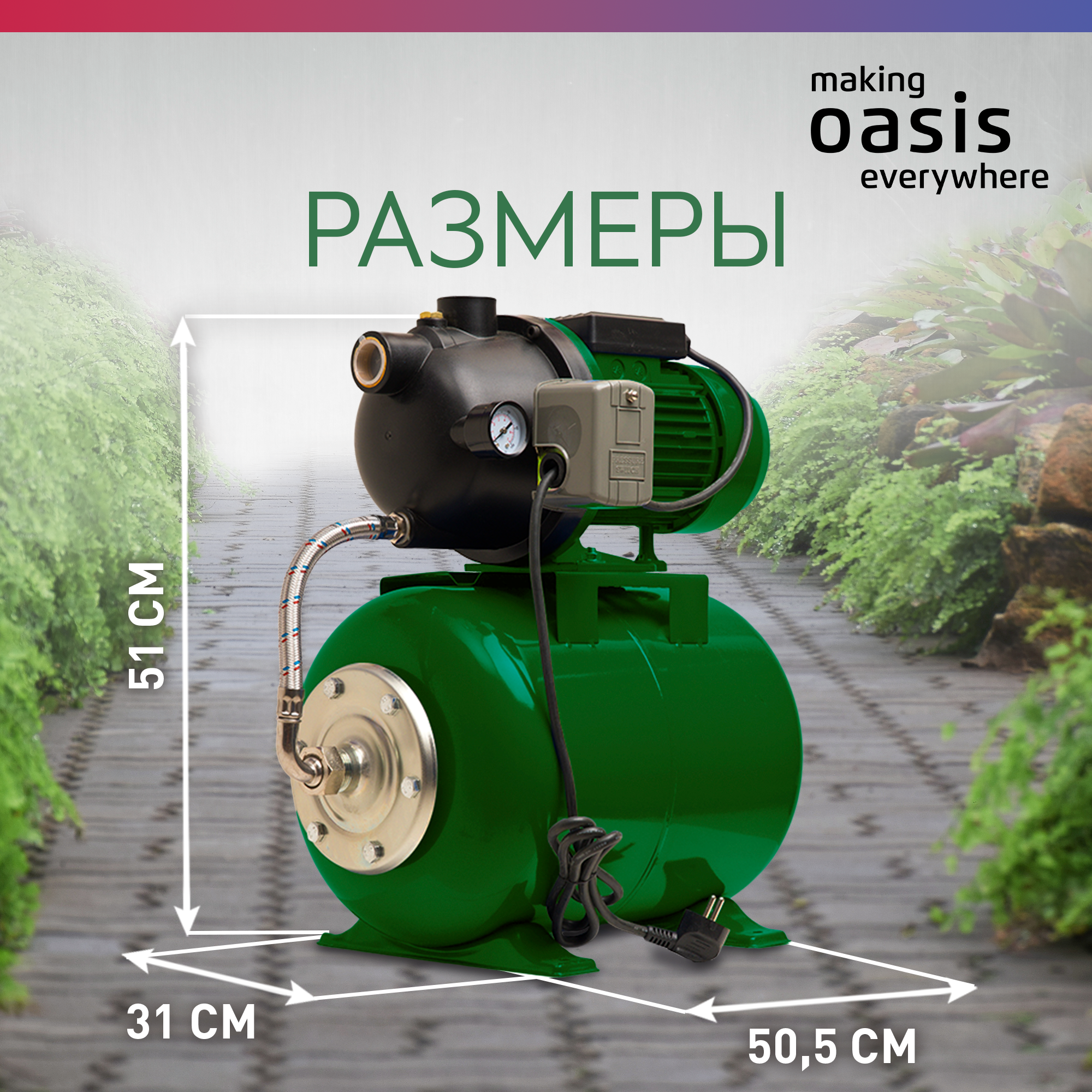 Купить Автоматическая насосная станция «making oasis everywhere» S-60/42P-24, 800 Вт, 60 л/мин, напор 42 м, бак 24 л, для воды, насос водяной поверхностный с доставкой по всей России.