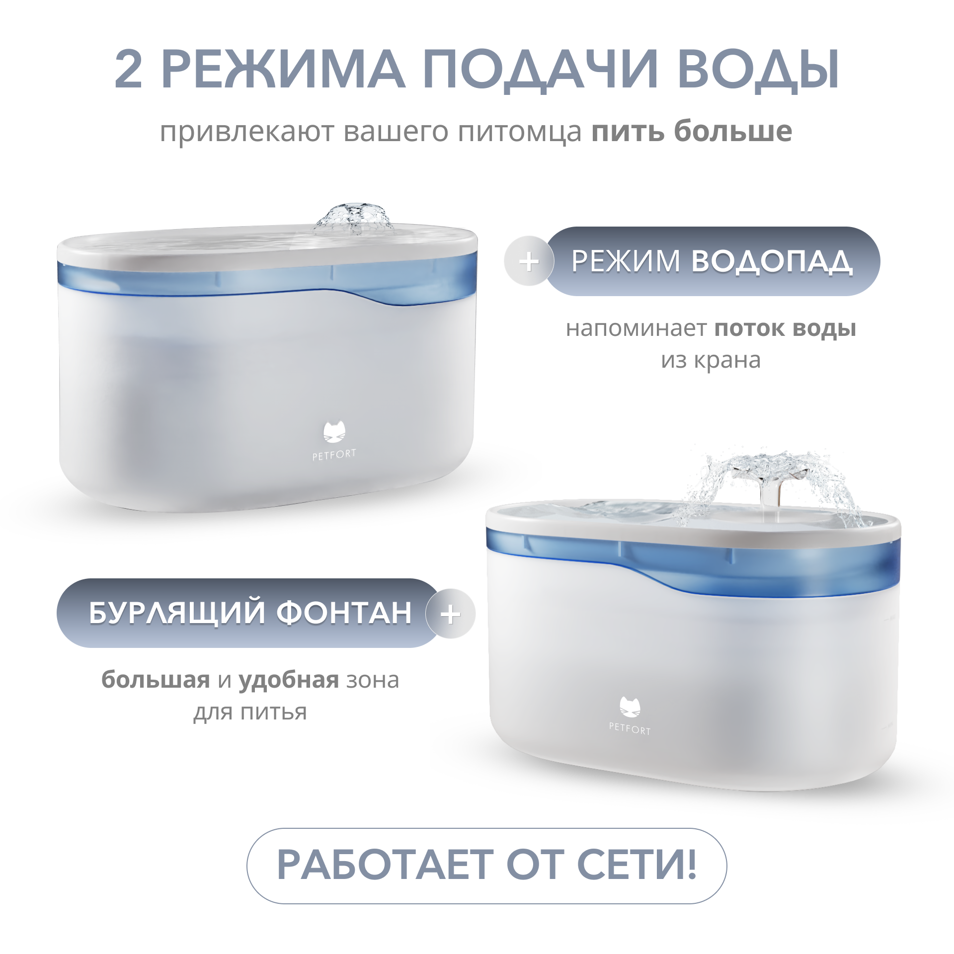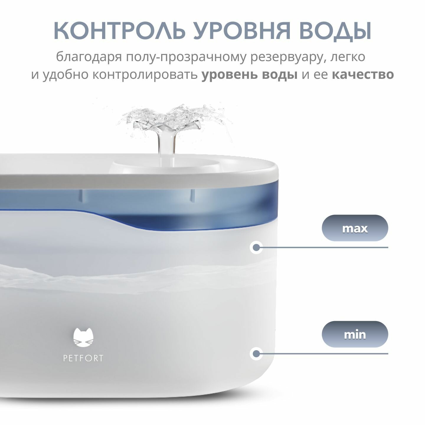 Автоматическая поилка-фонтан бренда PETFORT – это прекрасная возможность обеспечить домашних питомцев регулярной подачей чистой питьевой проточной водой. Это очень важный момент, ведь кошки инстинктивно не признают стоячую воду и на воле обычно пьют только проточную, которая защищает их от различных заболеваний, включая мочекаменную болезнь. Наша автопоилка имеет многоуровневую систему фильтрации и обеспечивает Вашего питомца всеми необходимыми макро и микроэлементами. Поилка-фонтанчик очень красивая, стильная и практичная, поэтому без труда впишется в любой интерьер. Самый главный элемент - прозрачный резервуар, который позволяет всегда отслеживать уровень воды и обеспечивать своевременное пополнение поилки, чтобы питомец никогда не испытывал жажду. Объем миски 2.8 литра – оптимальный вариант для котят и щенков, а также для взрослых котов, собак, грызунов и других домашних животных. В наличии также всегда есть сменные фильтры (Артикул: 1248926340), их можно заказать в любой момент, как и другие зоотовары, с которыми вы можете ознакомиться в нашем магазине. Успейте купить качественную автоматическую поилку для Вашего питомца, ведь забота о его здоровье – это лучшее проявление Вашей любви!